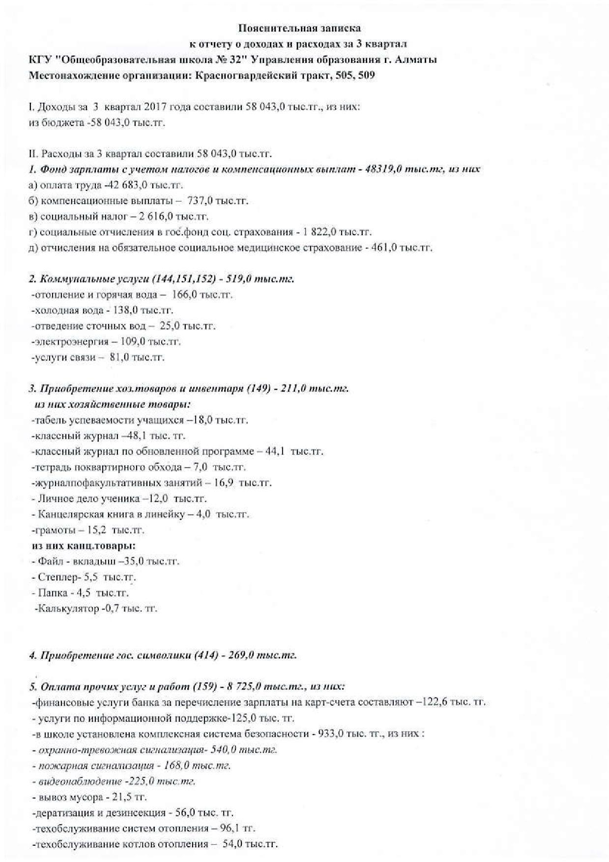 » Отчет о доходах и расходах за 3 кв 2017г