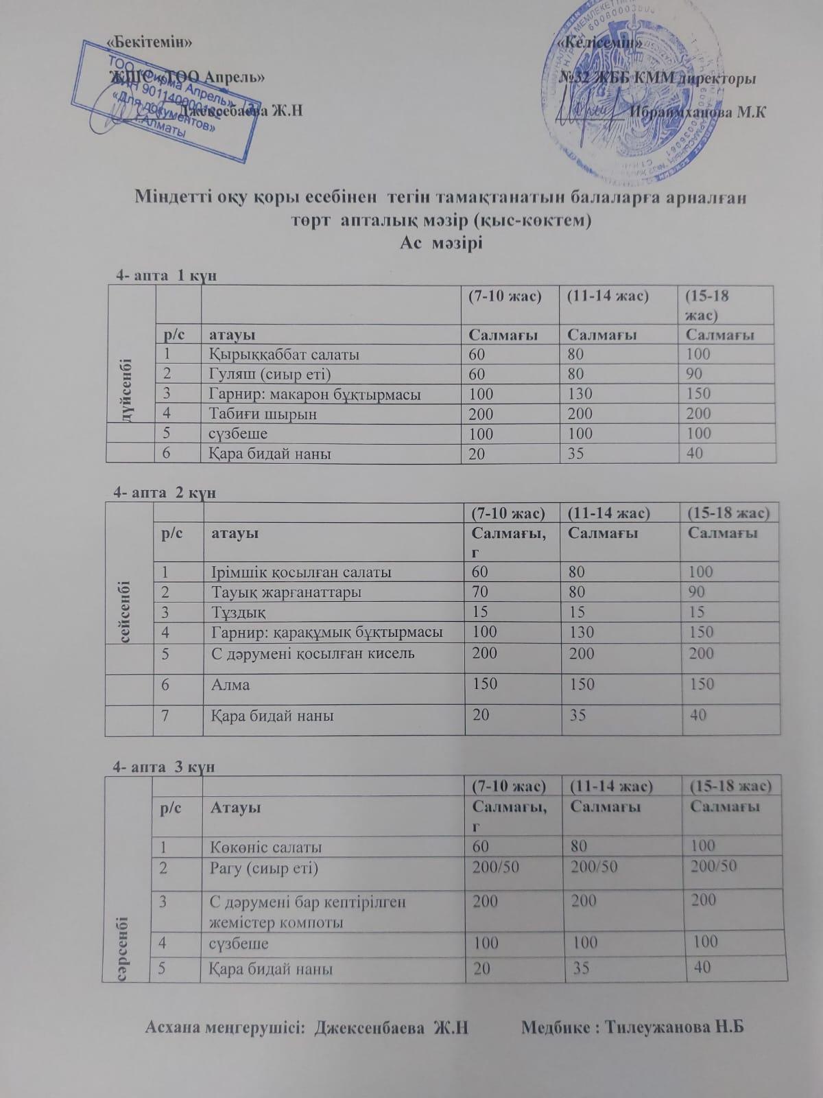 30 қаңтар 2024 0 1 2 3 4 5 Тегін тамақтануға арналған ас мәзірі.Меню блюд для организации бесплатного питания