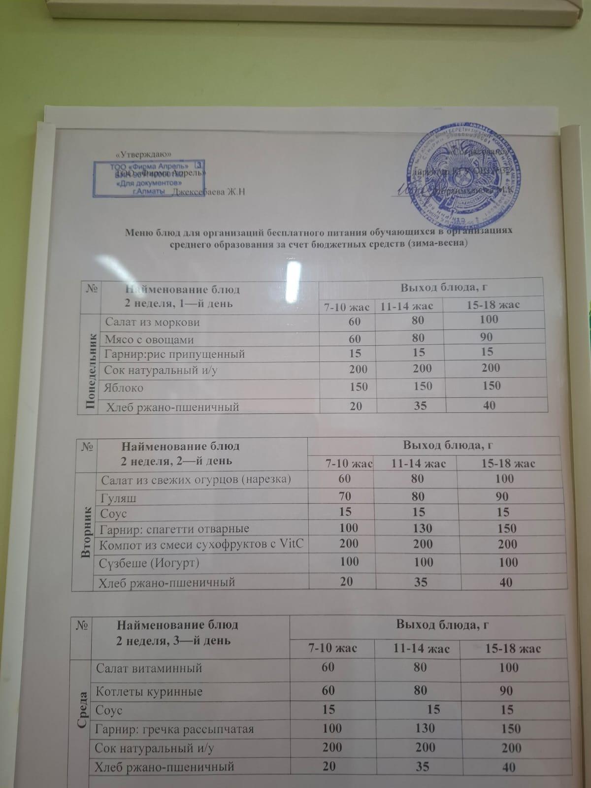 10 желтоқсан 2024 0 1 2 3 4 5 Тегін тамақтануға арналған ас мәзірі.Меню блюд для организации бесплатного питания