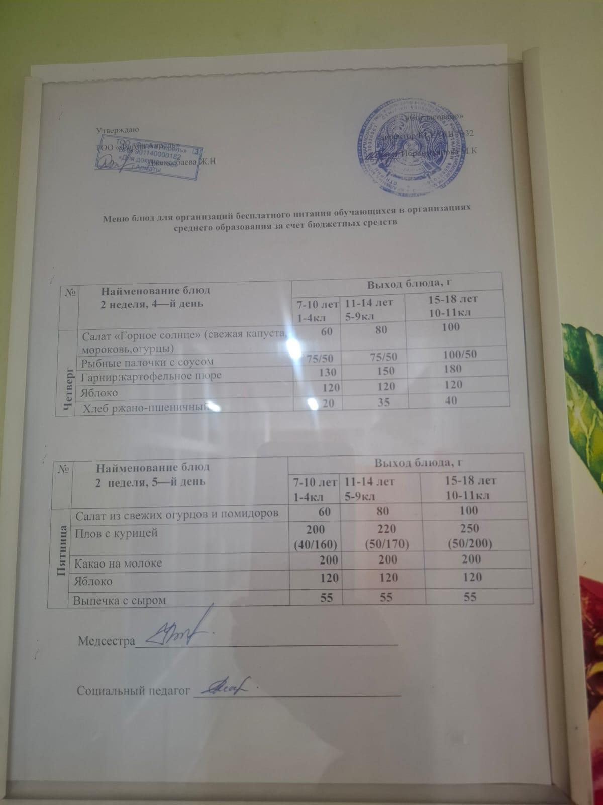 12 қыркүйек 2025 0 1 2 3 4 5 Тегін тамақтануға арналған ас мәзірі.Меню блюд для организации бесплатного питания