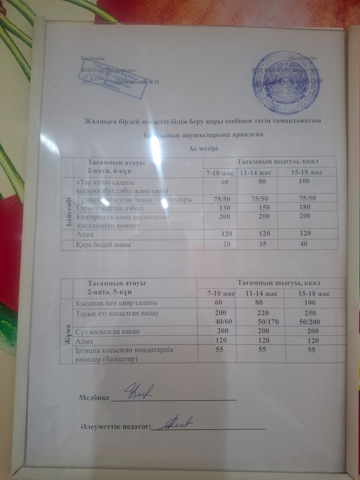 КММ №32ЖББМ-тің оқушыларға тегін тамақтануға арналған тағам мәзірі,4апта.Меню блюд для организаций бесплатного питания обучающихся В КГУ ОШ №32 4-неделя