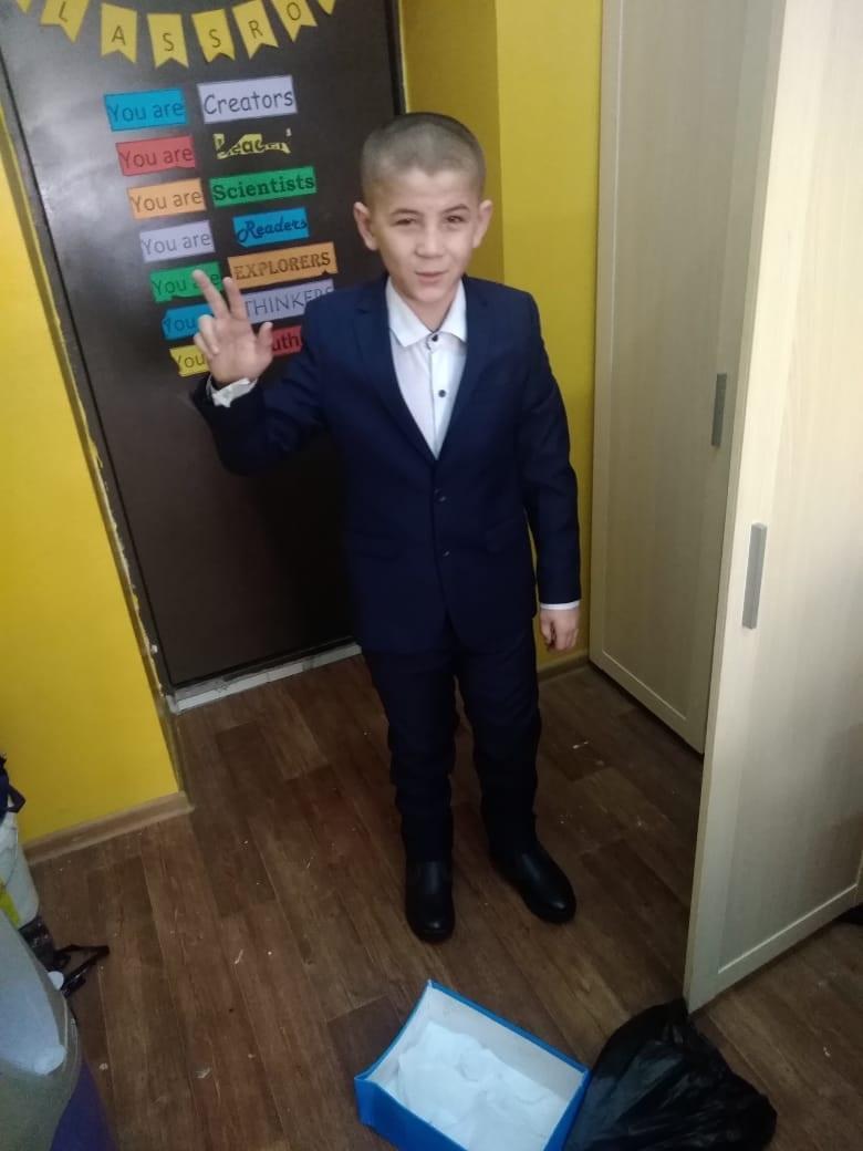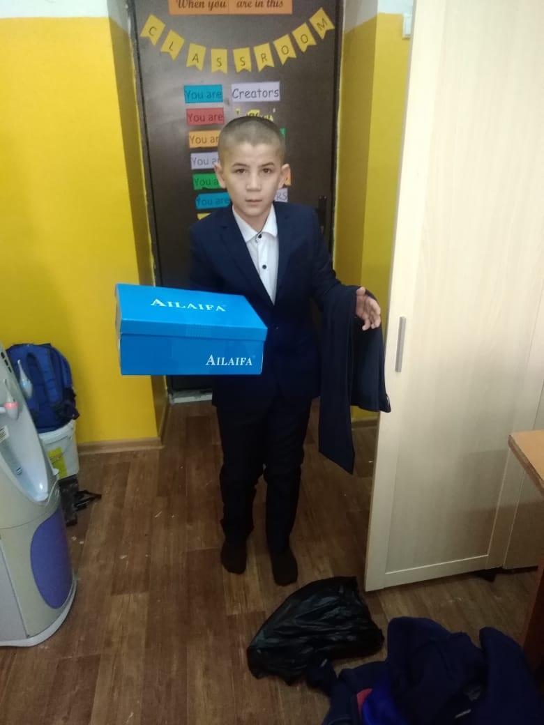 5 сынып оқушысына қайырымдылық қорынан көмек көрсетілді.Балаға жаңа киімдер сатып алып берді, үйіне сандай-ақ азық түлік алынды,сынып жетекшісі Асель Оңдасыновна./Ученику 5 класса была оказана помощь из благотворительного фонда.
