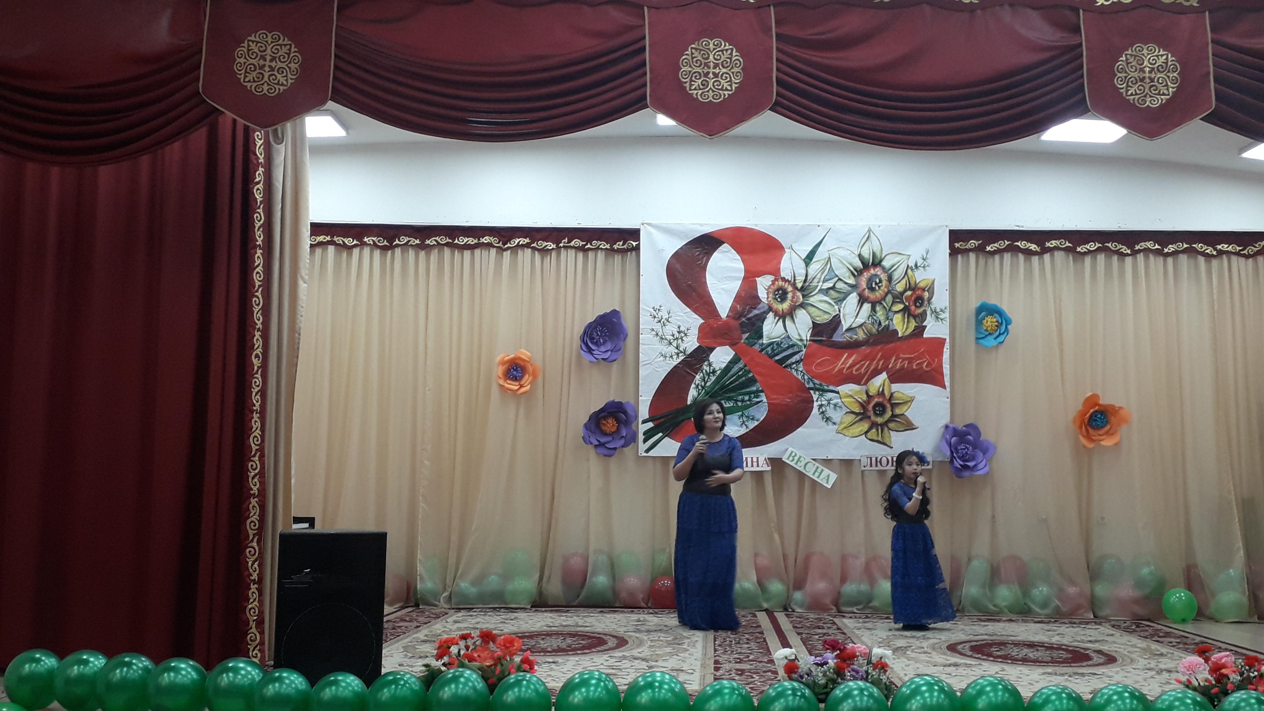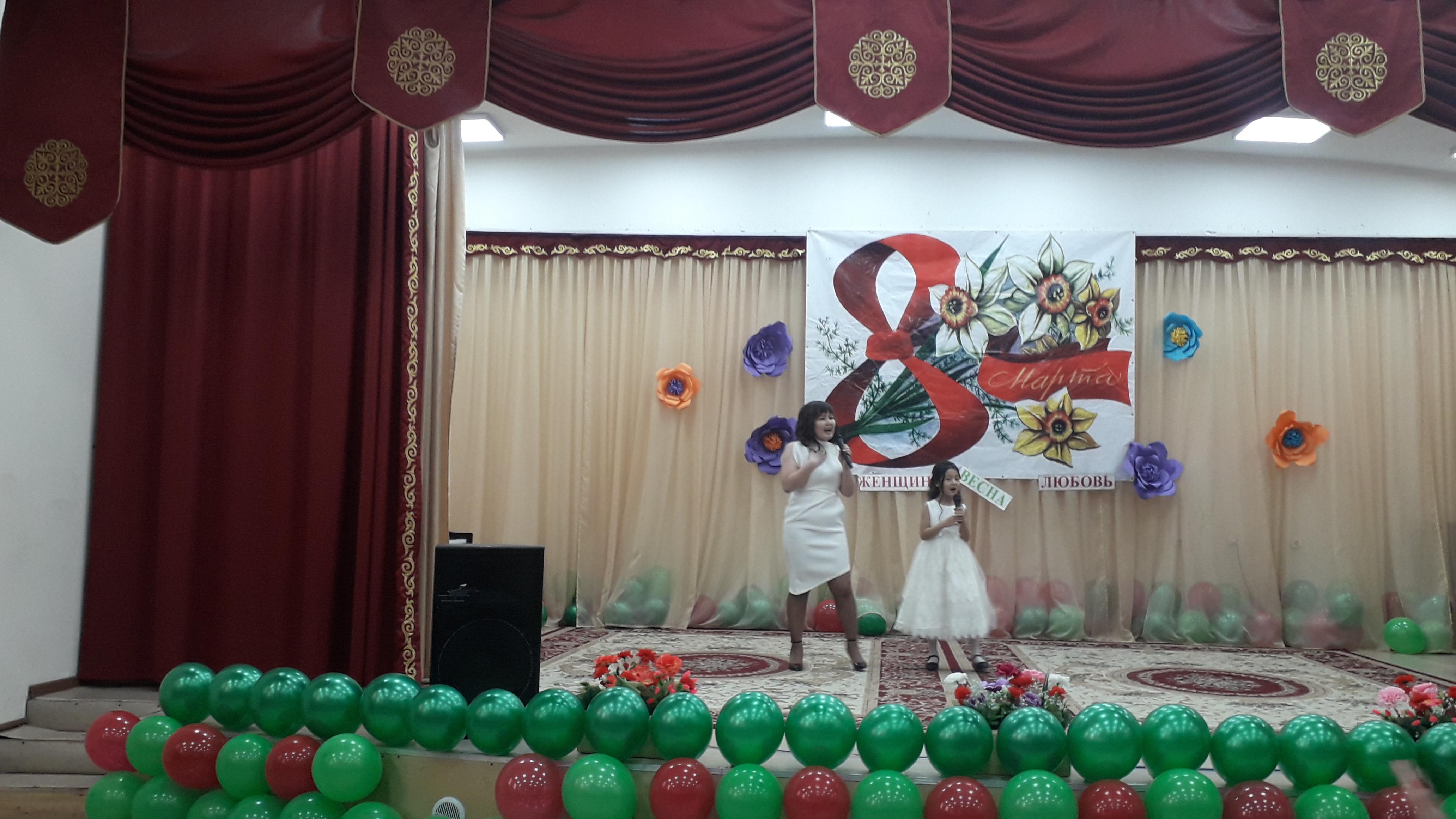 КГУ «Общеобразовательная школа №32 » Управления образования г.Алматы » Ақпарат » Бүгін мектебімізде 8-наурыз халықаралық әйелдер күніне ұйымдастырылған үлкен кеш өткізілді,онда мектебіміздің ұстаздары өнерлерін көрсетті./ Сегодня в нашей школе состоялся большой праздник, посвященный Международному женскому дню 8 Марта.