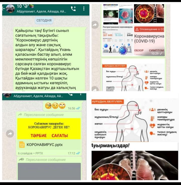 Бүгін 3 сәуірде № 32 ЖББМ КММ-де сынып жетекшілері "мен қашықтан қалай оқимын" және "өзімді вирустық аурулардан қалай қорғауға болады "тақырыбында онлайн сынып сағаттарын өткізді. Сынып сағаттары ZOOM платформаларын, Instagram әлеуметтік желілерін пайдаланды.Whatsap.Вирустық аурулардың алдын алу, қашықтықтан оқыту қалай өтетіні туралы роликтер көрсетілді. Оқушылар м сынып жетекшілеріне сұрақтар қойып, барлық сұрақтарына жауап алды.