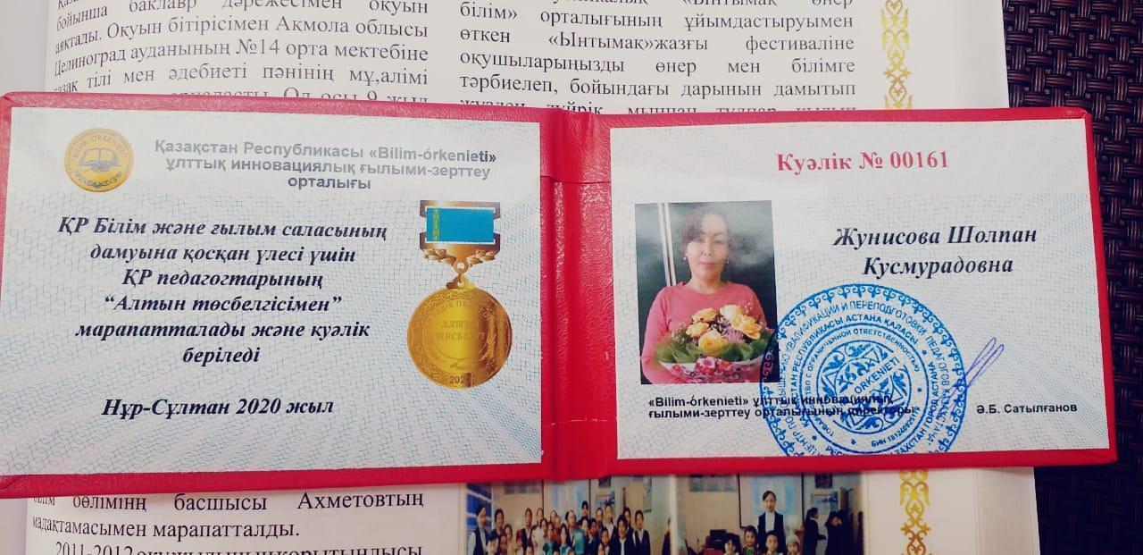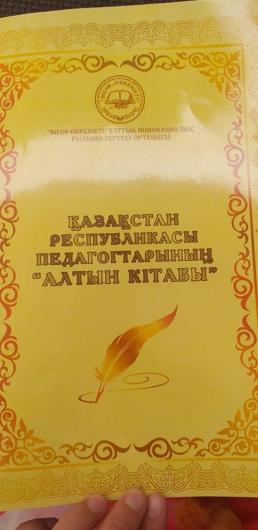 24 маусым 2020 0 1 2 3 4 5 Ұстаз жетістігі/ Достижение учителя Мектептін бастауыш сынып мұғалімі Қазақстан Республикасы педагогтарының "Алтын кітабы"атты энцеклопедиясына енді. Учитель начальных классов школы вошел в энцеклопедию педагогов Республики Казахстан "Золотая книга"