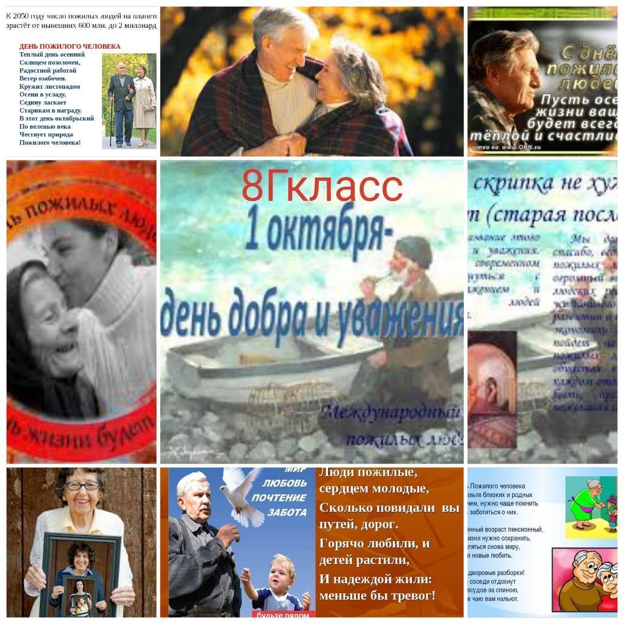 В каждой стране есть категория людей, которые требуют особого внимания и заботы. Это - люди пожилого возраста. С целью воспитания доброты, уважение к людям старшего поколения, умение уважать близких людей (бабушек, дедушек ). Сегодня 1 уроком в КГУ «ОШ №32 » прошли классные часы ко дню пожилых.