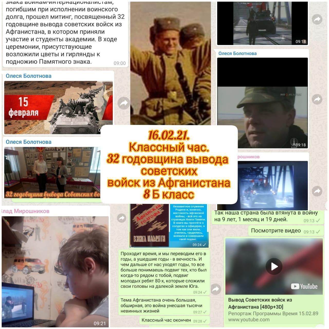 Ауғанстаннан әскерлерді шығарылуынына 32 жыл толуына арналған сынып сағаттары/Классные часы посвященные 32-летию вывода воиск из Афганистана