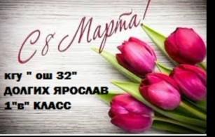 В КГУ ОШ №32 учащиеся поздравили учителей онлайн с Международным женским днем 8 марта .Учащиеся начальной школы посвятили стихи ,учащиеся среднего звена подготовили концертные номера,старшеклассники оформили фойе школы.Цель мероприятия: создание условий для праздничного настроения ,развитие творческих и актерских способностей детей; воспитание любви и чувства благодарности мамам,любимым учителям.