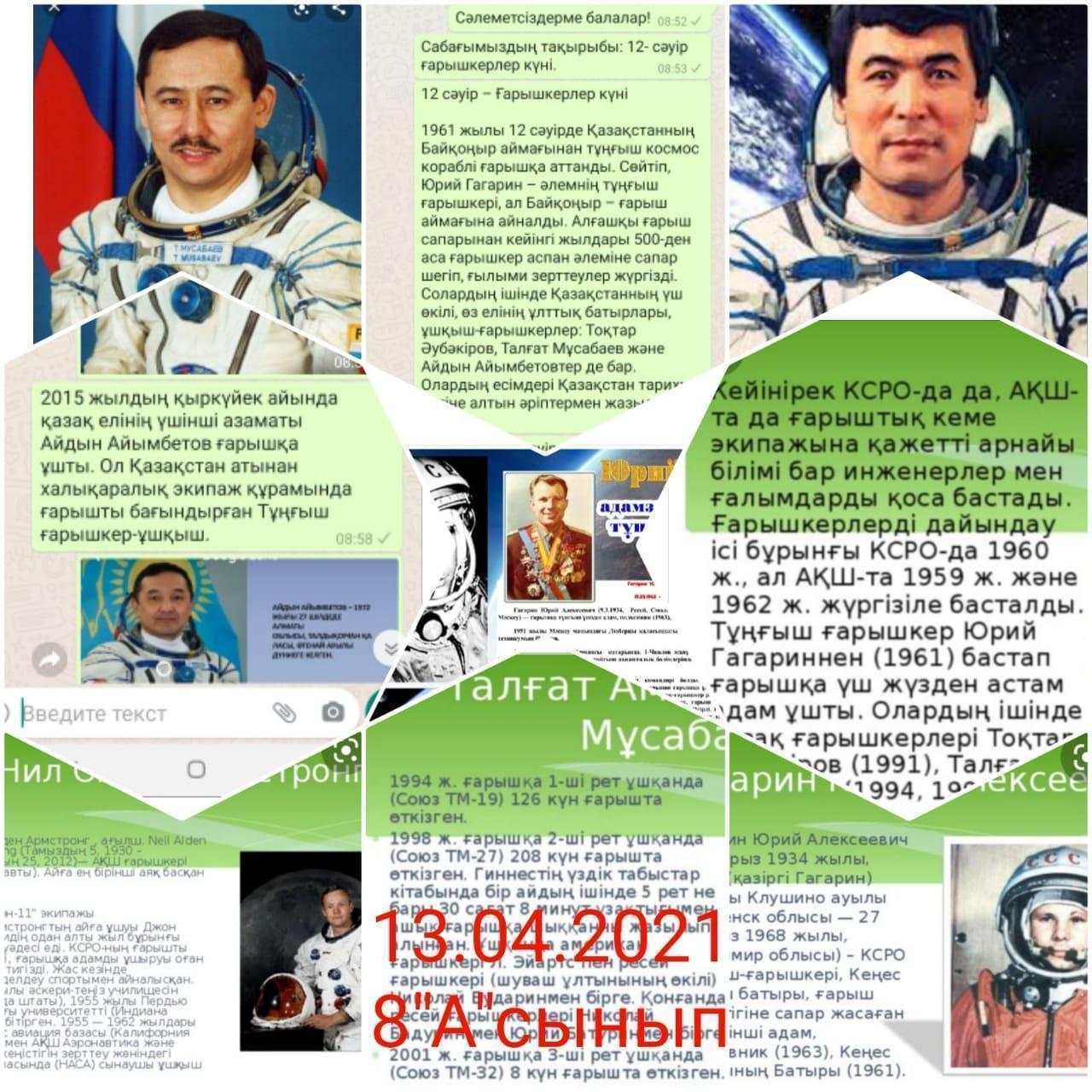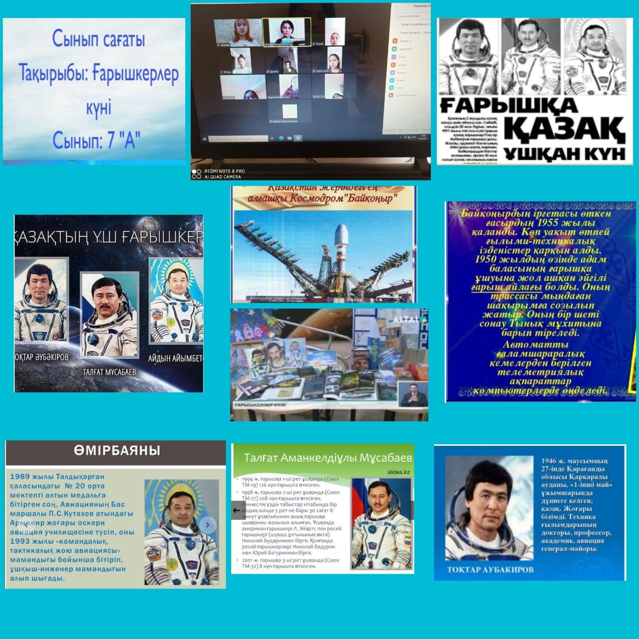 Бүгін №32 ЖББМ КММ 1 сабақта "Ғарыш күні" атты сынып сағаттары өтті 12 сәуірде біздің еліміз астронавтика күнін атап өтеді. Бұл бүкілхалықтық мереке. Біз үшін ғарыш аппараттарының жерден ұшатыны таныс сияқты. Биік аспан далаларында ғарыш аппараттарының түйісуі орын алады. Ғарышкерлер ғарыш станцияларында айлар бойы тұрады және жұмыс істейді, Автоматты станциялар басқа планеталарға кетеді. Сынып сағаттарының негізгі мақсаты-1. Балалардың білімге деген қызығушылығын ояту. 2. Патриотизм сезімін дамыту 3. ғарыш туралы білімді кеңейту; 4. "ғарыш"тақырыбы бойынша сөздік қорын кеңейту.