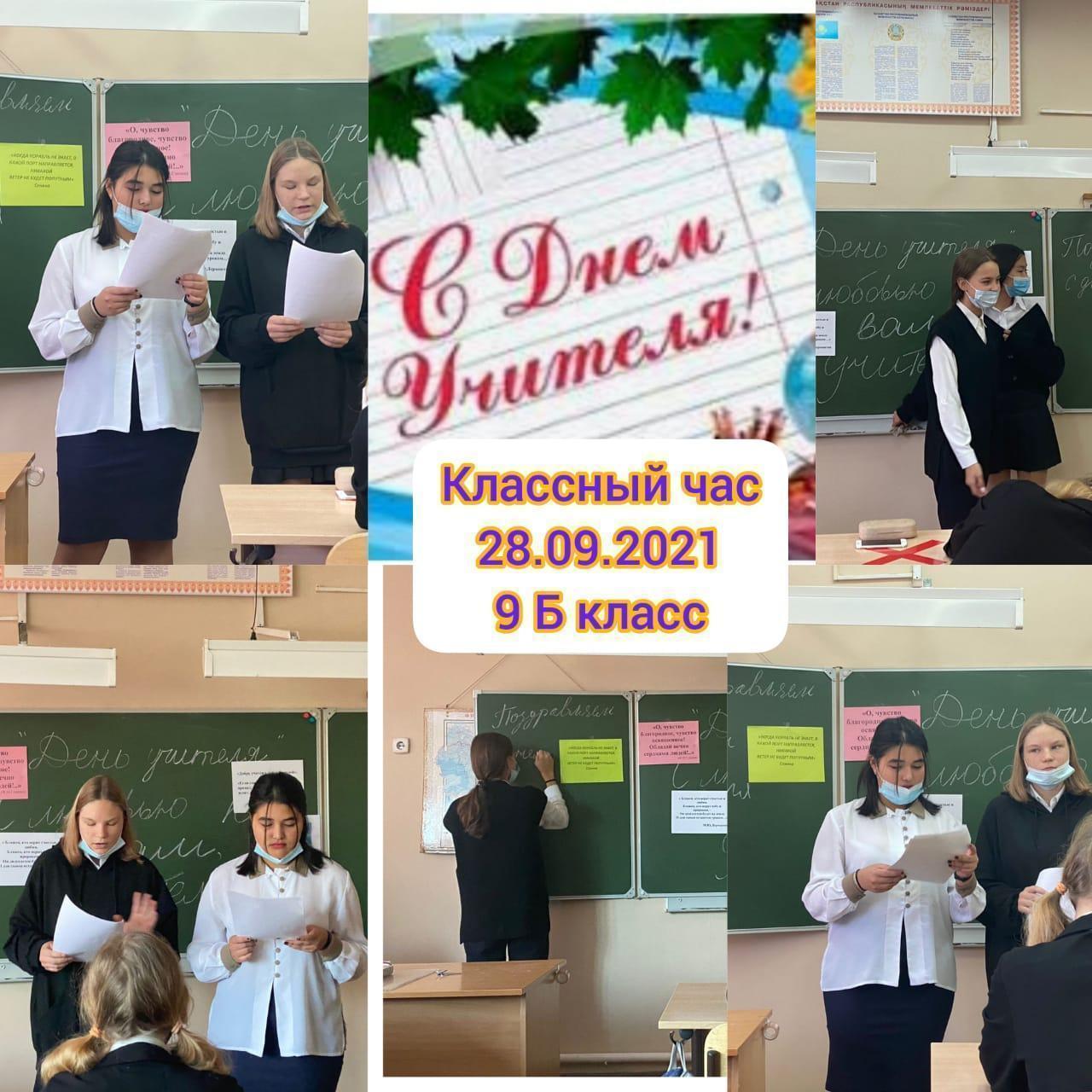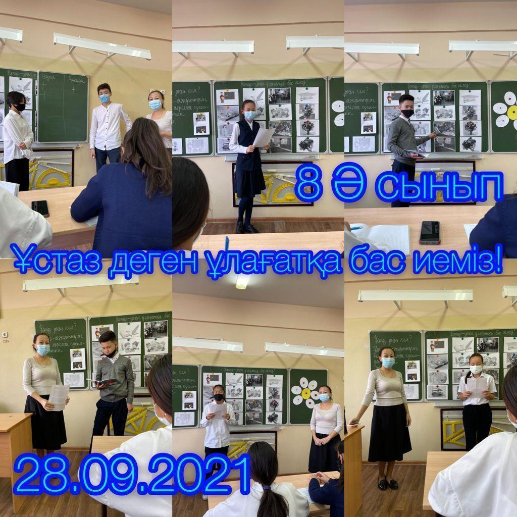 28 қыркүйек 2021 0 1 2 3 4 5 Сынып сағаты./ Классные часы . Бүгін ұстаздар күніне арналған сынып сағаттары өтті. Сегодня 1 уроком прошли классные часы ко Дню Учителя. Цель мероприятия: воспитание уважения к профессии учитель, улучшить качество общения и взаимопонимание учеников и учителей.