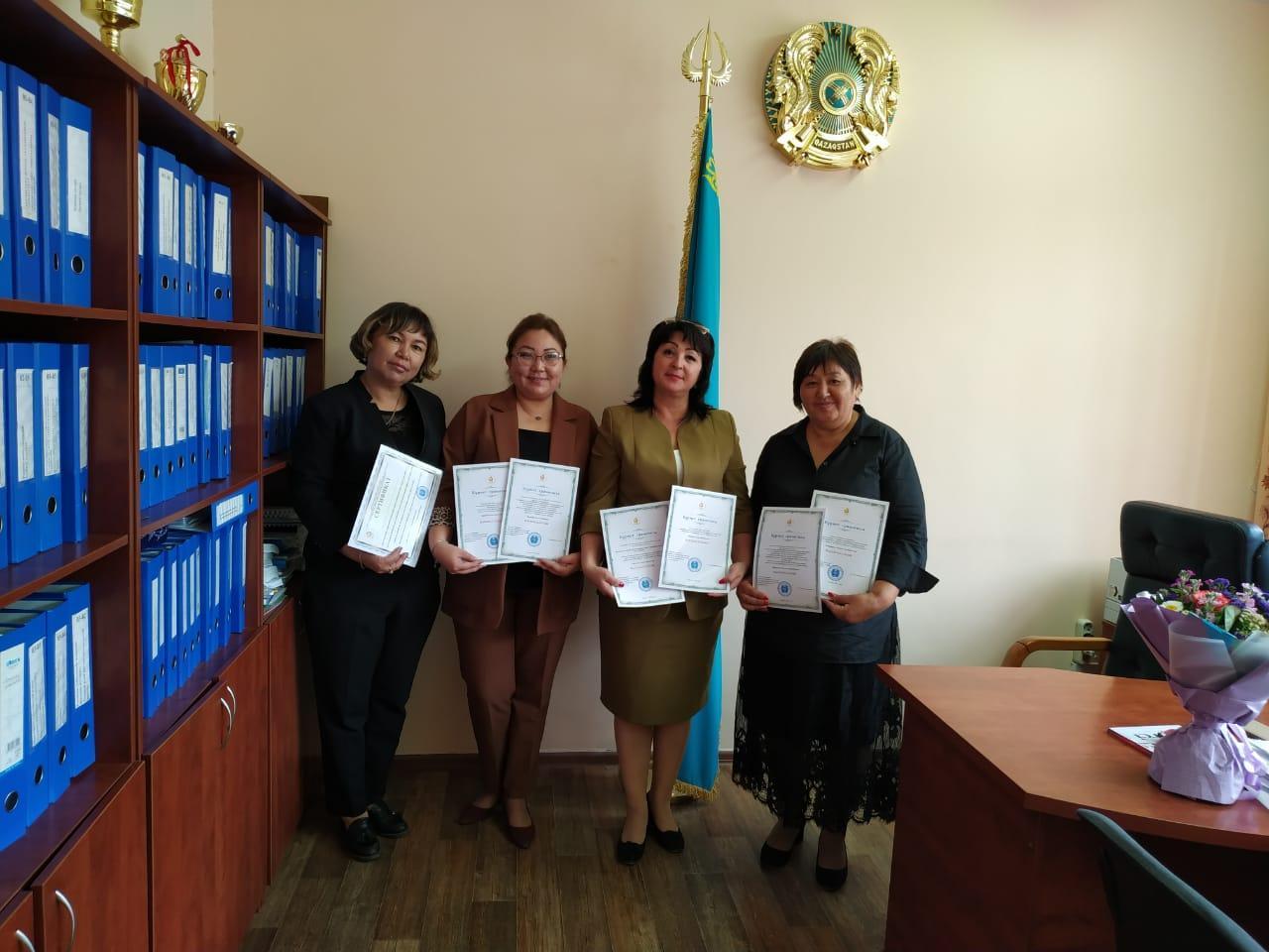 К 30-летию Независимости почетными грамотами награждены директор школы Хасенова А.Р. зам.директора по ВР Бейщанова К.А. учитель казахского языка Кұнапия Асем Болатовна