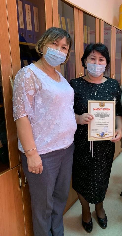 Мектебіміздің мұғалімдері Кушербаева М.К. Байдильдаева И.Ж. Кыдралиева С.А. Момбекова Ж.С Кұнапия А.Б. Найзабек А.К. ұстаздар күні аудандық кәсіподақ ұйымының Құрмет грамоталарымен марапатталды