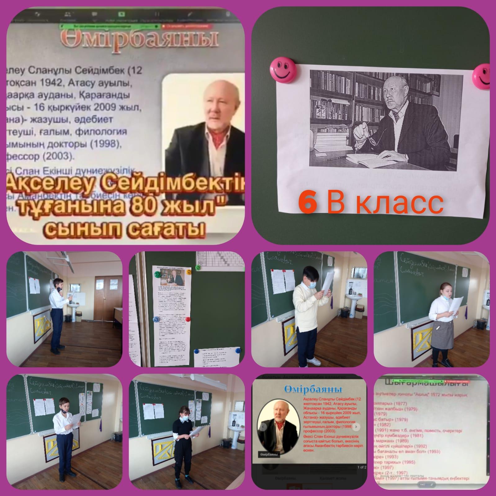 07 желтоқсан 2021 0 1 2 3 4 5 Акселеу Сейдембектің 80 жылдығы/ Классные часы 80-летию Акселеу Сейдембека Акселеу Сейдембектің 80 жылдығына орай сынып сағаттары өтті.Сегодня 1 уроком прошли классные часы к 80-летию Акселеу Сейдембека.