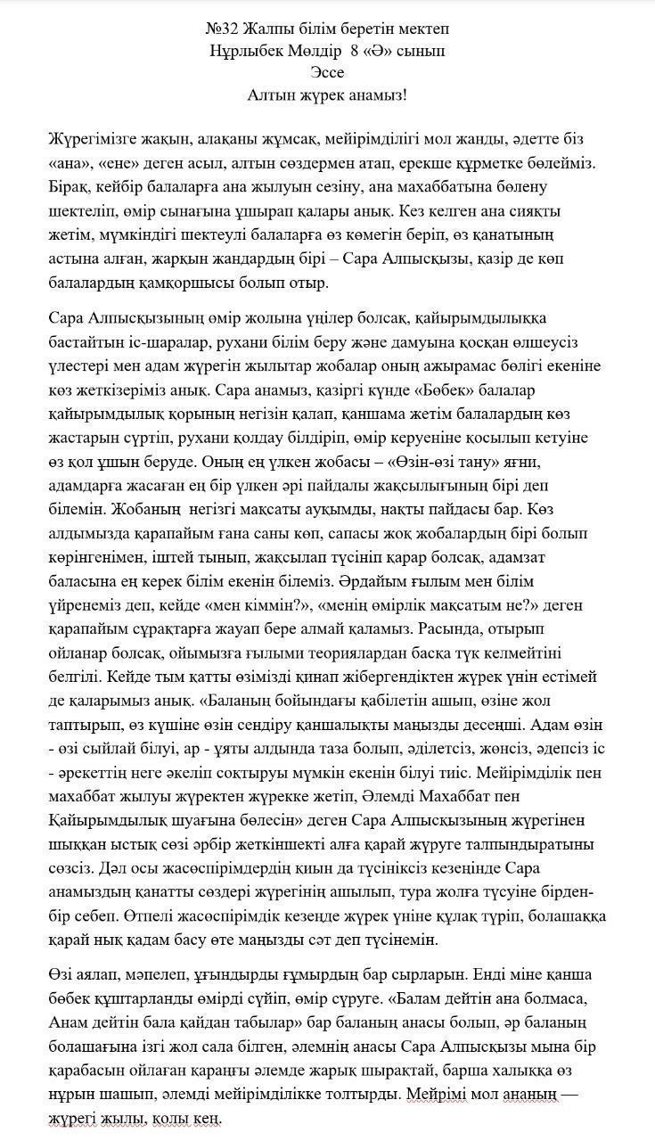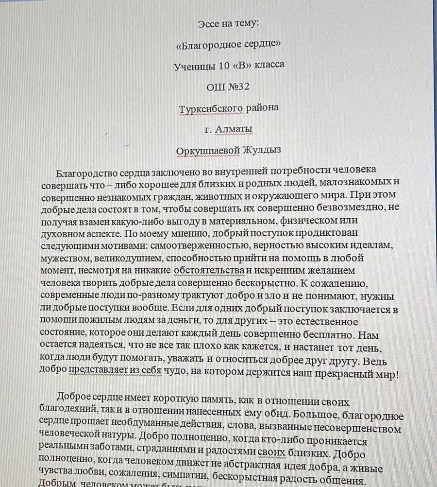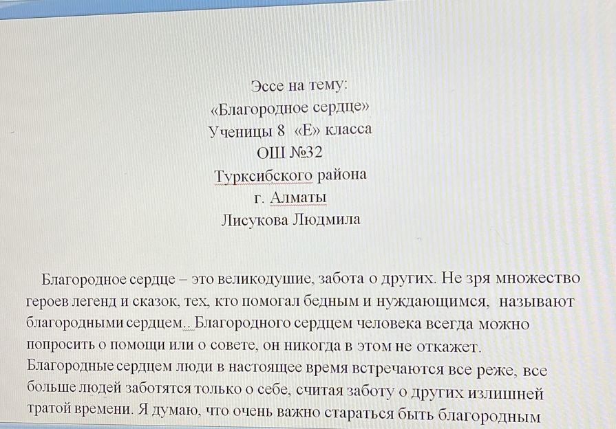 7-10 сынып оқушыларына арналған "Асыл жүрек" эссе байқауы/ Конкурс эссе «Асыл жүрек» - «Благородное сердце»- для учащихся 7-10 классов