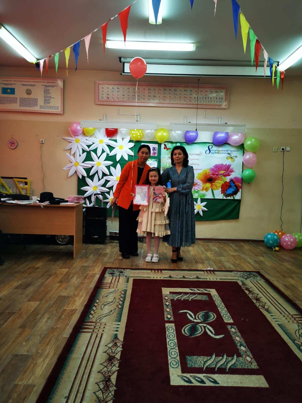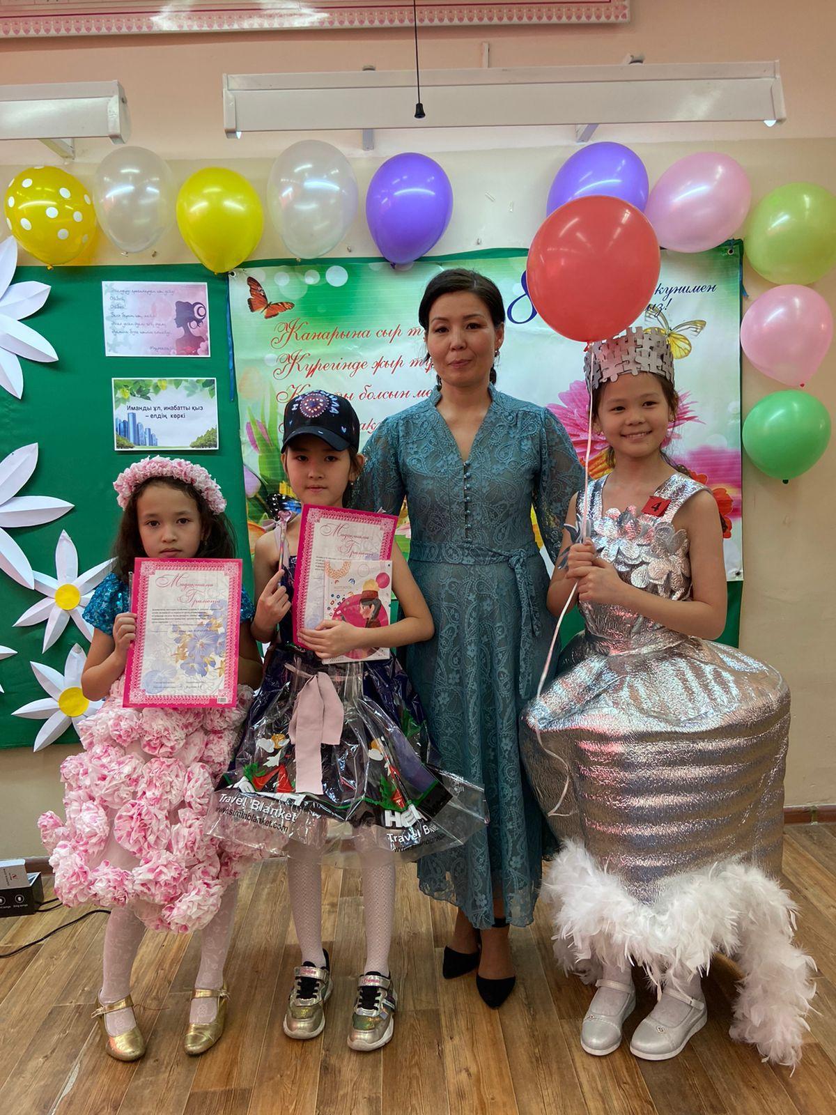 Сегодня во 2" Ж "классе прошел конкурс" Кыз сыны", посвященный Международному женскому дню 8 марта. Всего в конкурсе приняли участие 9 девочек . Все девочки проявили активность,демонстрируя свое искусство классу, родителям. Оразбай Асылай, заняла 1 - е место. Классный руководитель: Оспанбекова Шолпан Галеновна