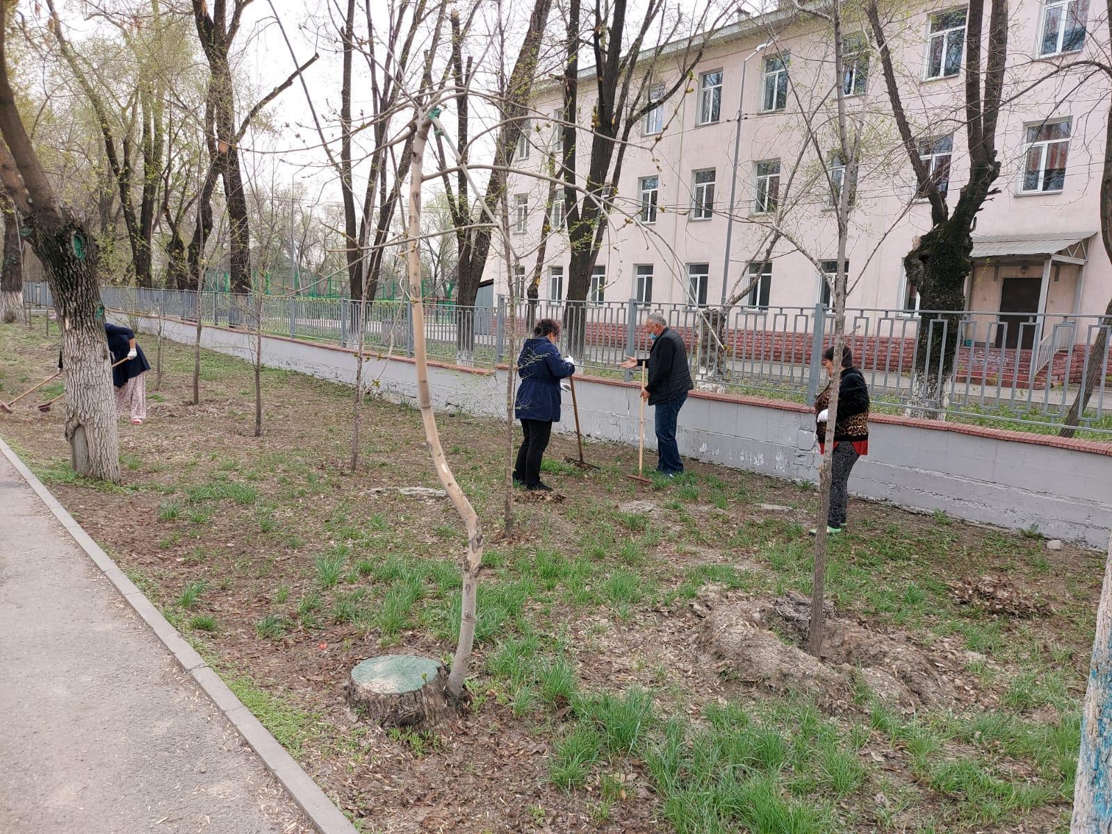 За сотрудниками был определен участок работы.Работа на участках велась по уборке территории, озеленению. В честь праздника Наурыз в школе учащиеся и родители приняли активное участие в челлендже под названием «Әр отбасынан бір ағаш». Были высажены саженцы деревьев и кусты роз различных видов.