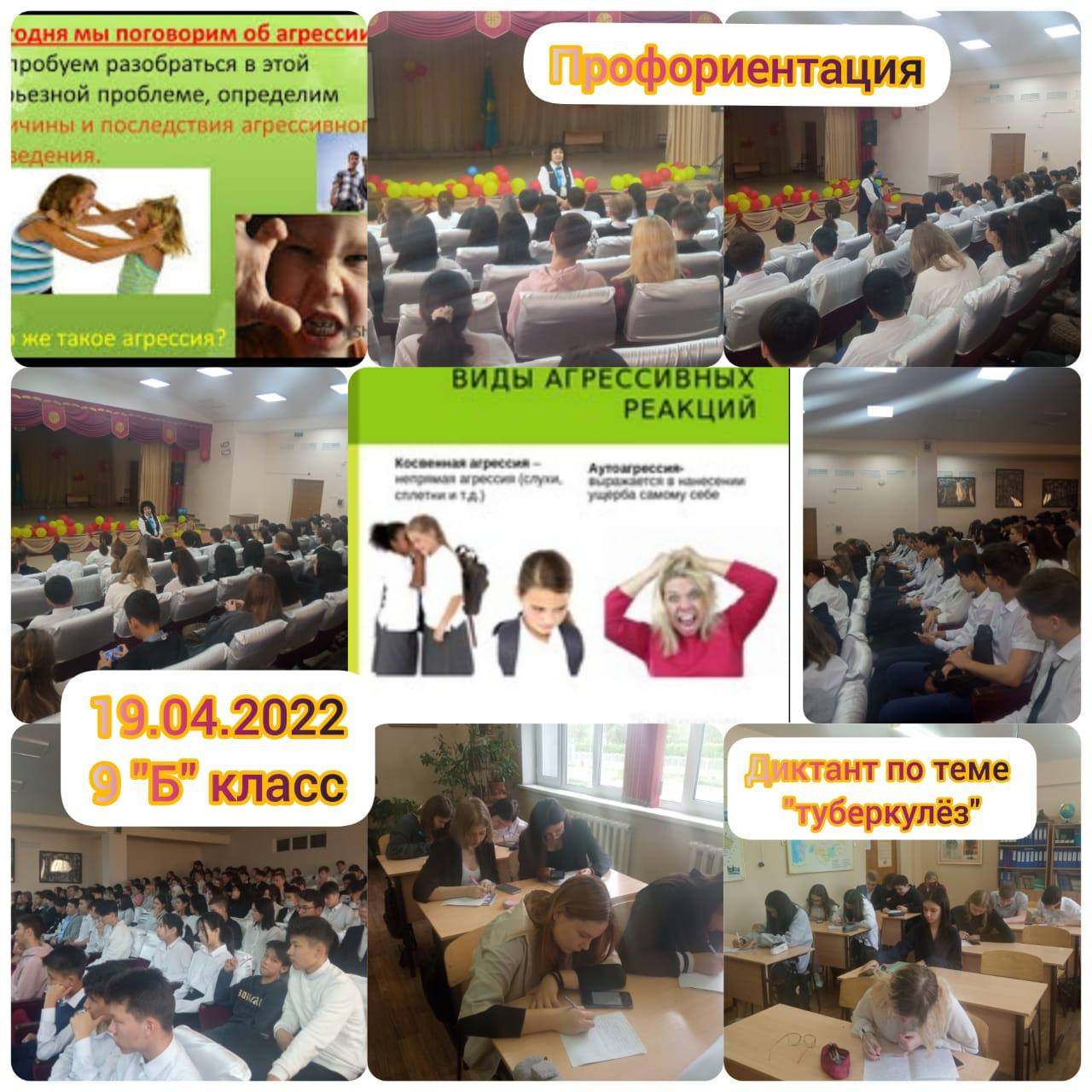 Сегодня 1 уроком прошли классные часы по программе "Ел жастары",учащиеся писали диктант по теме "Туберкулез ",проведена профориентационная работа с 9-11 классами.