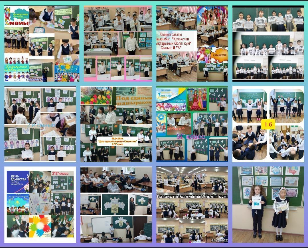 25 сәуір 2022 0 1 2 3 4 5 Қазақстан халықтарының бірлігі күніне арналған бірыңғай сабақтар!/Единые Уроки , посвященные ко Дню единства народов Казахстана! 25 сәуірде №32 ЖББМ КММ-де Қазақстан халықтарының бірлігі күніне арналған бірыңғай сабақтар өтті.25 апреля в КГУ ОШ №32 прошли единые уроки , посвященный Дню единства народов Казахстана.