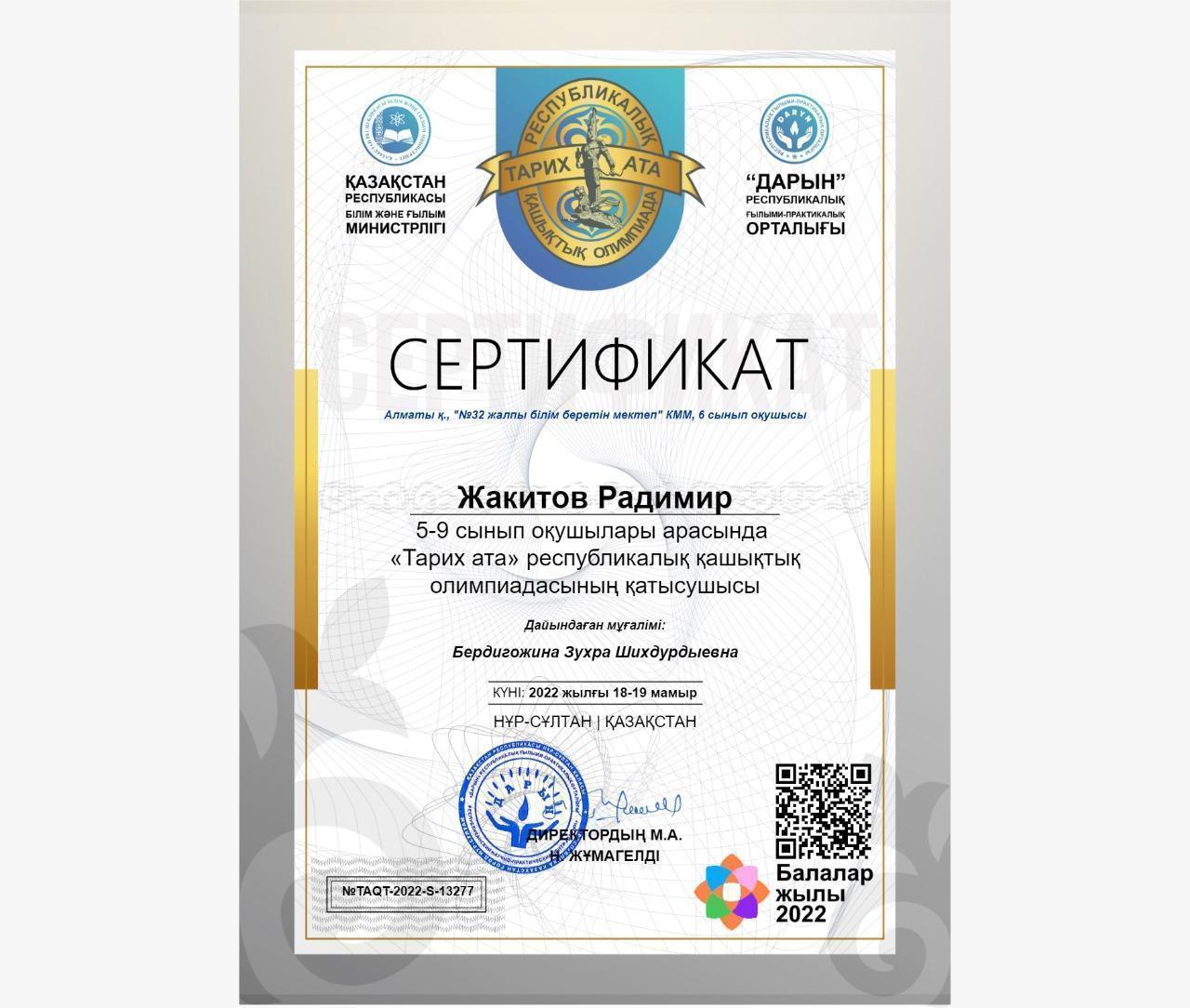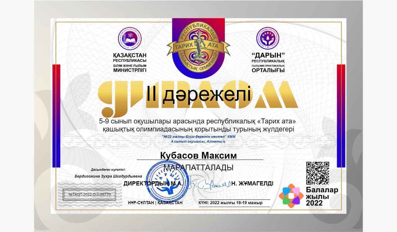 Оқушы жетістігі./Достижение школьников.