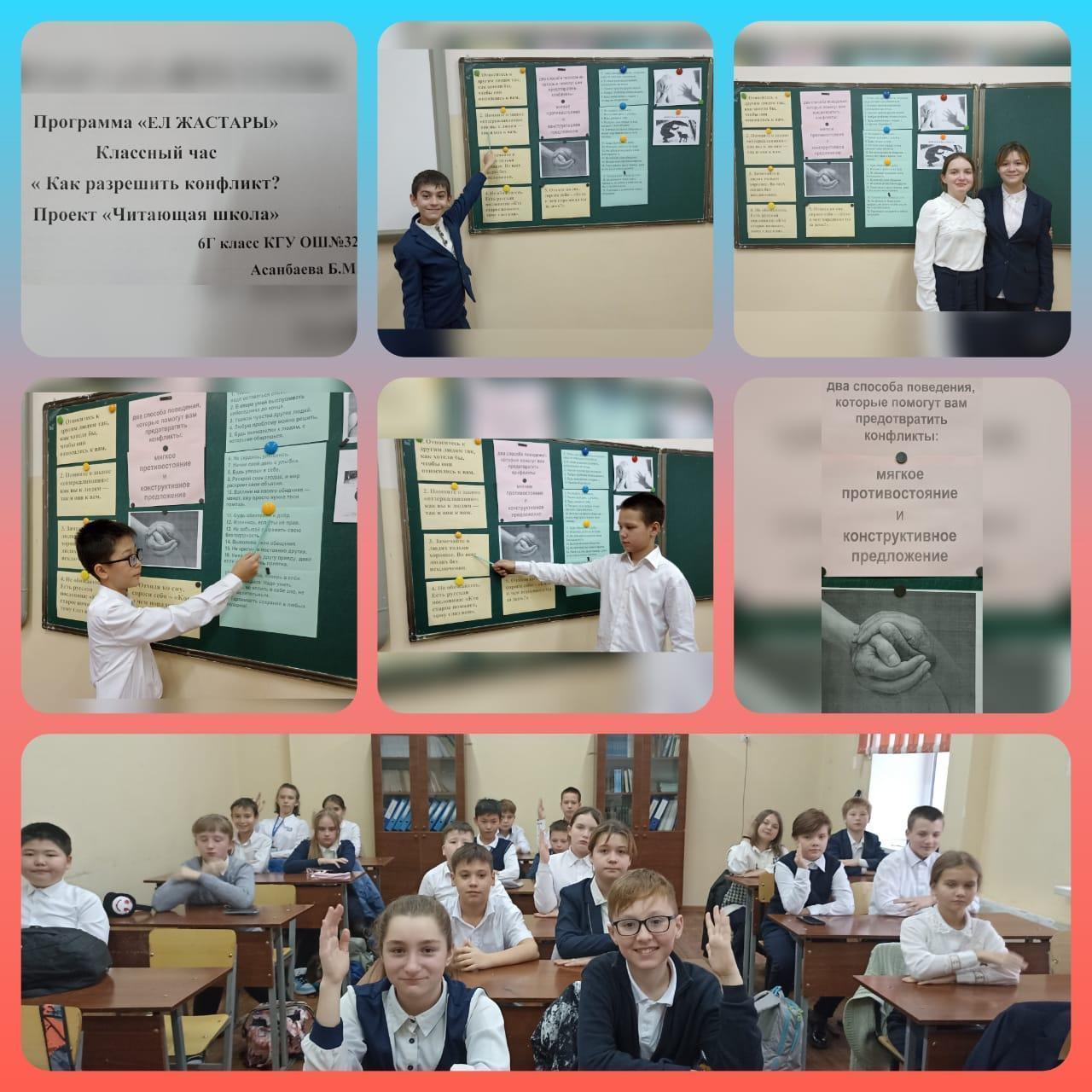 Сегодня в КГУ «ОШ №32» прошли тематические классные часы по программа«ЕЛ ЖАСТАРЫ - Искусство жить достойно. В чём оно состоит?» Проект «Читающая школа»