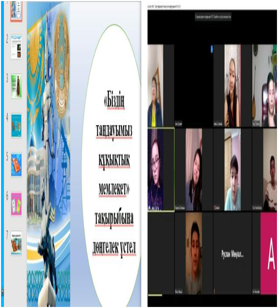 20 қазан 9-10 сыныптар арасында «Біздің таңдаумыз-занды мемлекет»атты онлайн форматта дөнгелек үстел өткізілді.