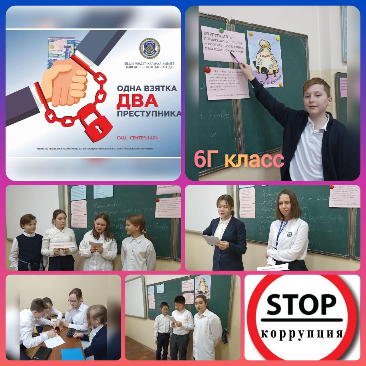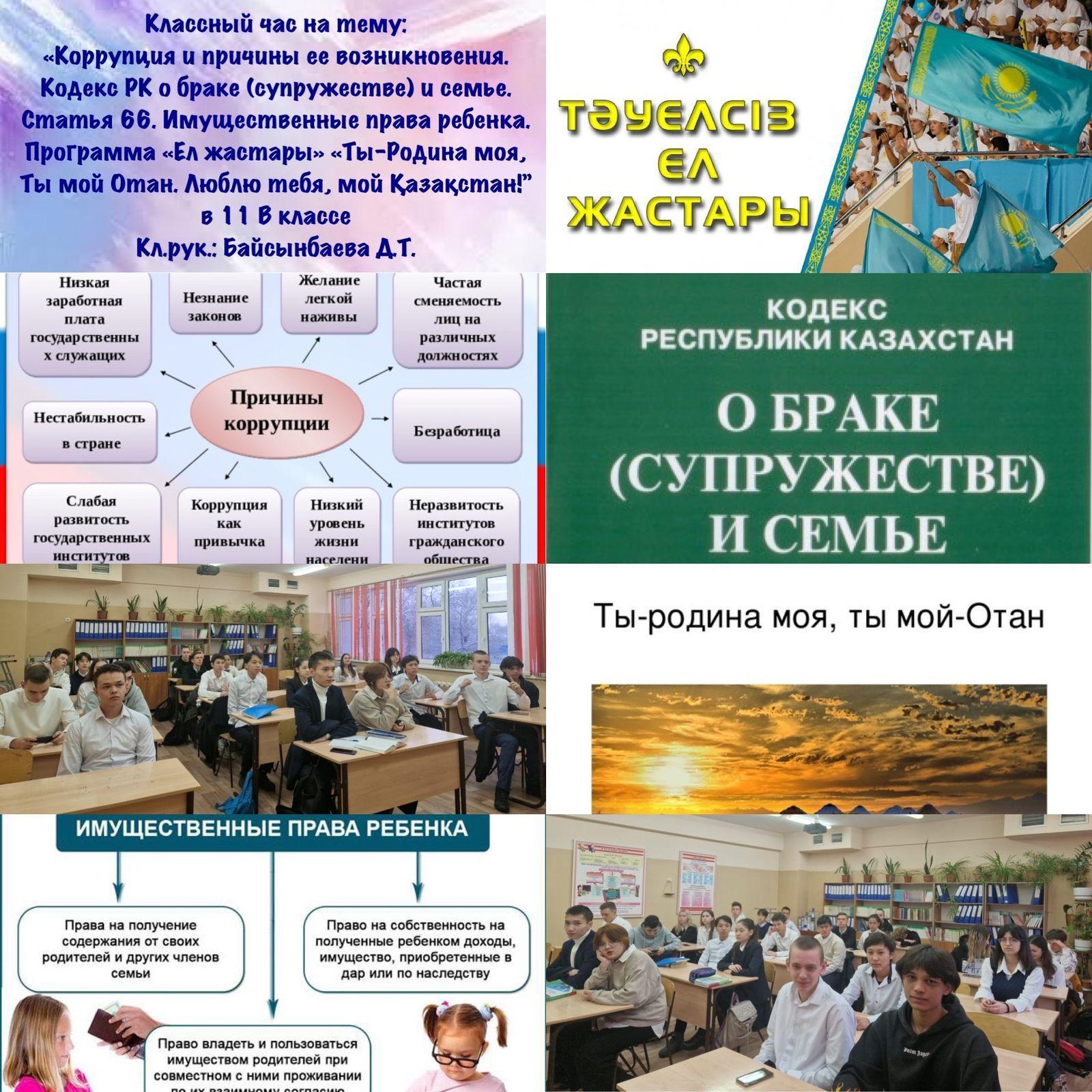 Сегодня 1 уроком во всех классах прошли тематические классные часы по программе "Ел Жастары" и открытые классные часы ,приуроченные к Международному дню против коррупции.