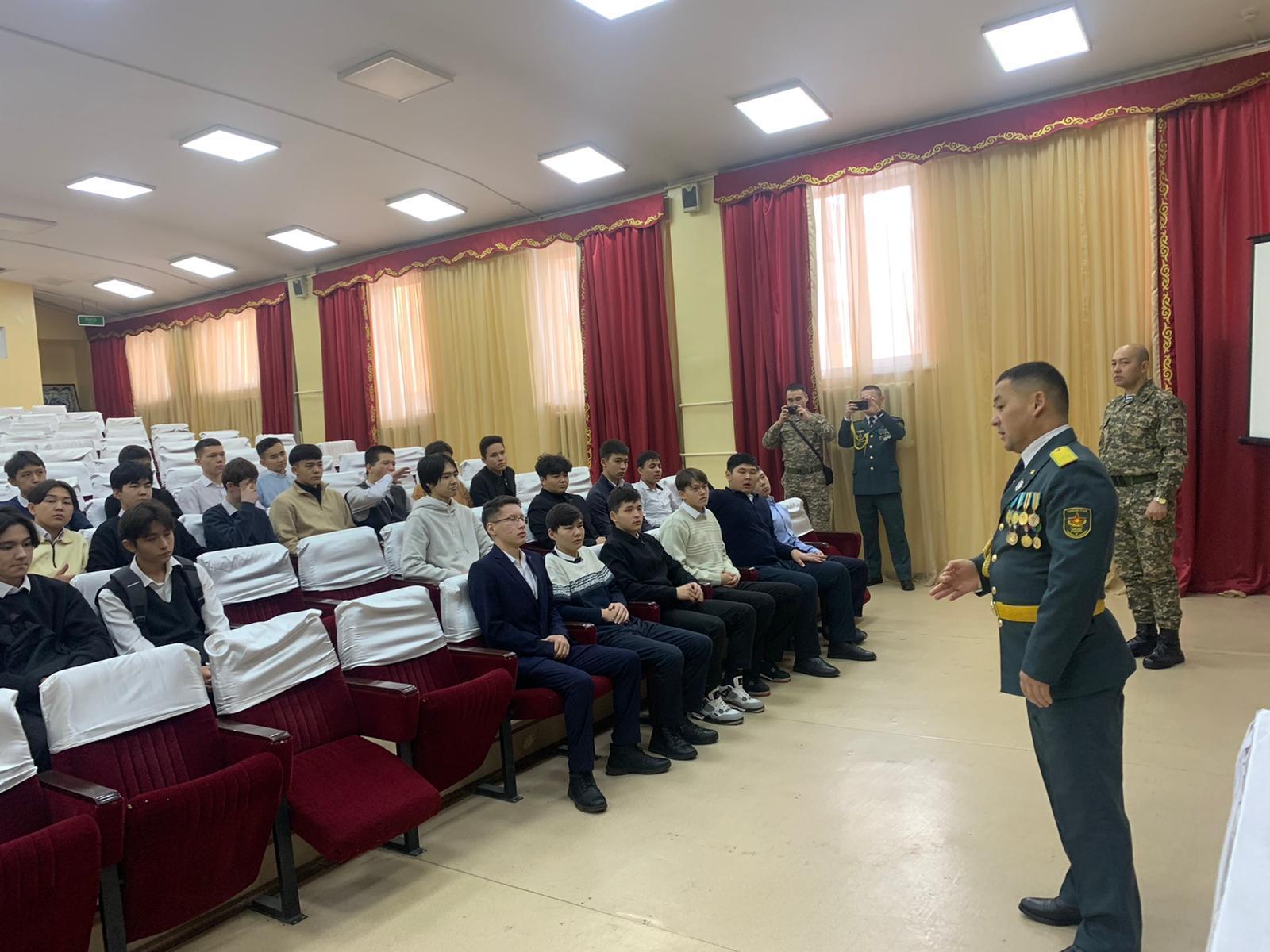 23 желтоқсан 2022 0 1 2 3 4 5 Кәсіптіқ бағдар/Профориентационная работа 1993 әскери бөлімінің офицерлері мектебімізде кәсіптік бағдар жұмысын жүргізді. Мақсаты: Әскери қызметтің имиджін көтеру , насихаттау сВоеннослужащие в/ч 1993 провели профориентационную работу среди учащихся старших классов. Основная цель: поднятие имиджа воинской службы