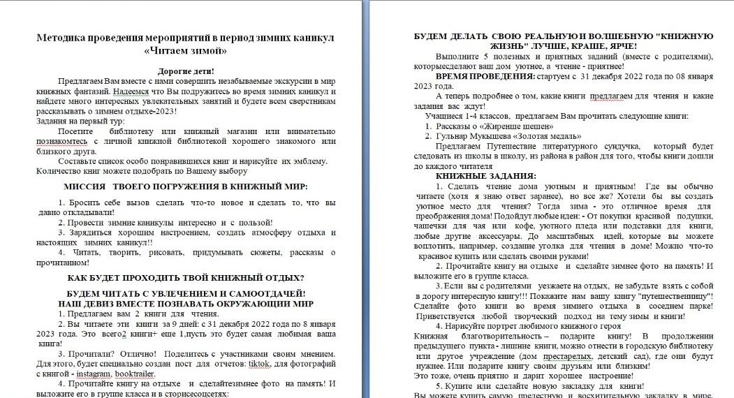 Методика проведения мероприятий в период зимних каникул