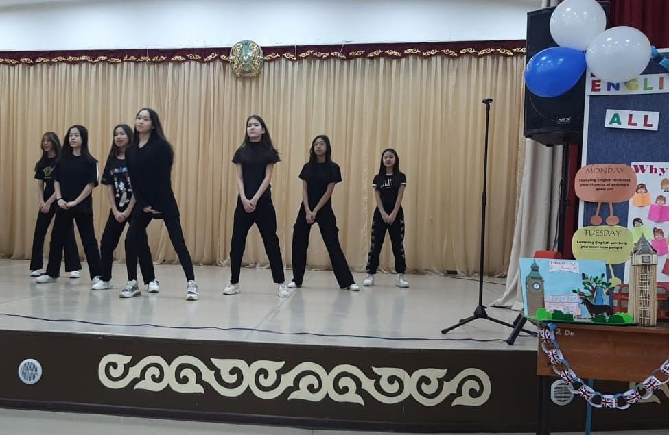 Бүгін мектебімізде ағылшын пәнінің апталығы жабылуы жоғары деңгейде өтті. Оқушылар ағылшын тілінде тақпақтар ,әндер айтып , би билеп өз өнерлерін ортаға салды. Бастауыш сынып оқушылары "Шалқан" ертегісін қойылым түрінде көрсетті.