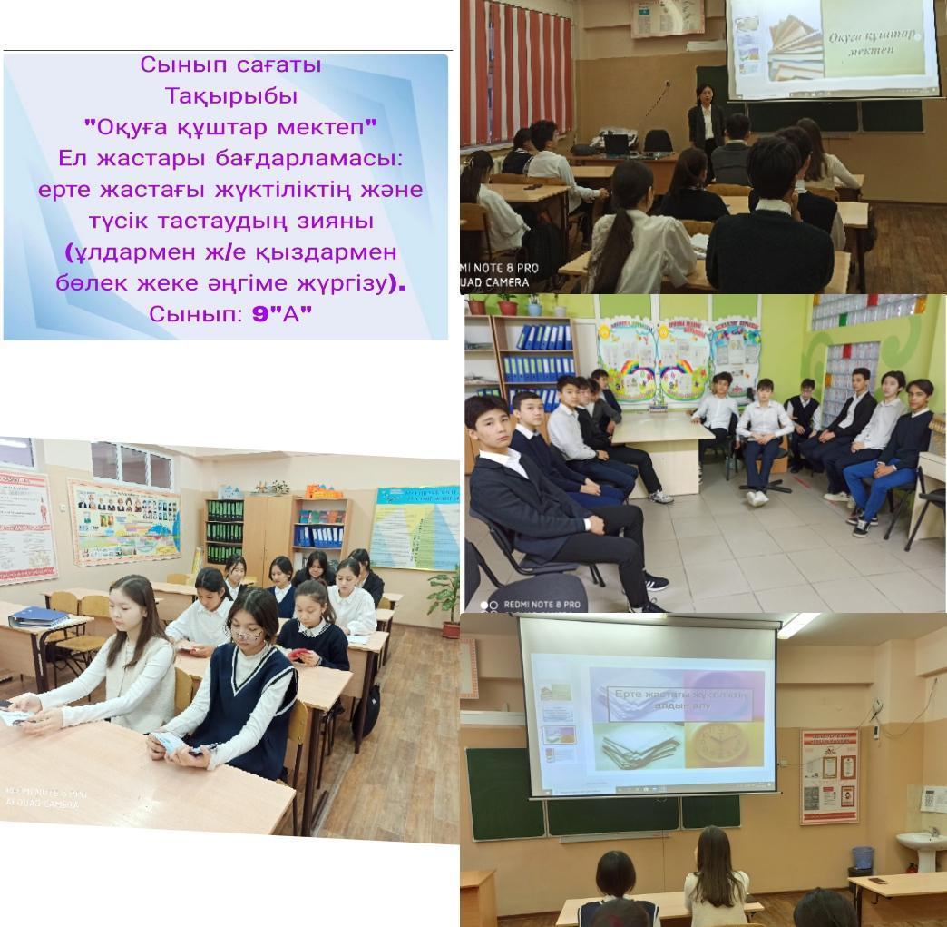 07 ақпан 2023 0 1 2 3 4 5 ЕЛ ЖАСТАРЫ» бағдарламасы/ «Оқуға құштар мектеп» жобасы Программа«ЕЛ ЖАСТАРЫ - В чём ценность человеческой жизни?»/ Проект «Читающая школа» Бүгін 1 сабақта сынып сағаттары ЕЛ ЖАСТАРЫ» бағдарламасы/ «Оқуға құштар мектеп» жобасы тақырыбында өтті.Сегодня 1 уроком прошли классные часы по теме Программа«ЕЛ ЖАСТАРЫ - В чём ценность человеческой жизни?»/ Проект «Читающая школа».