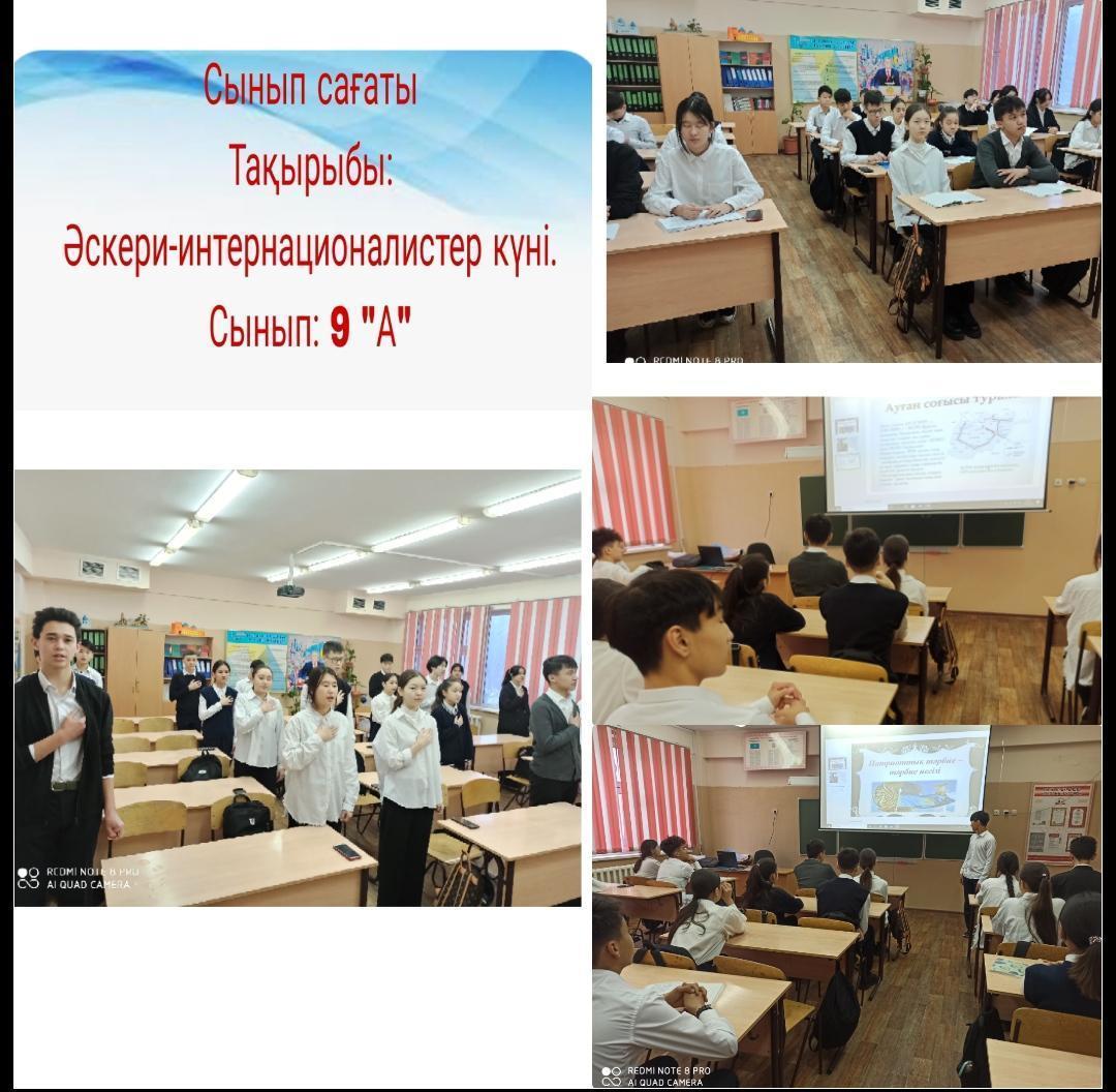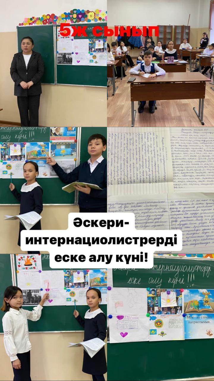 Бүгін 1 сабақта әскери-интернационалистерді еске алу күні.«ЕЛ ЖАСТАРЫ»бағдарламасы бойынша тәрбие сағаттары өтті. Сегодня 1 уроком прошли классные часы по теме "День памяти воинов-интернационалистов. Программа«ЕЛ ЖАСТАРЫ - Если хочешь быть здоров»