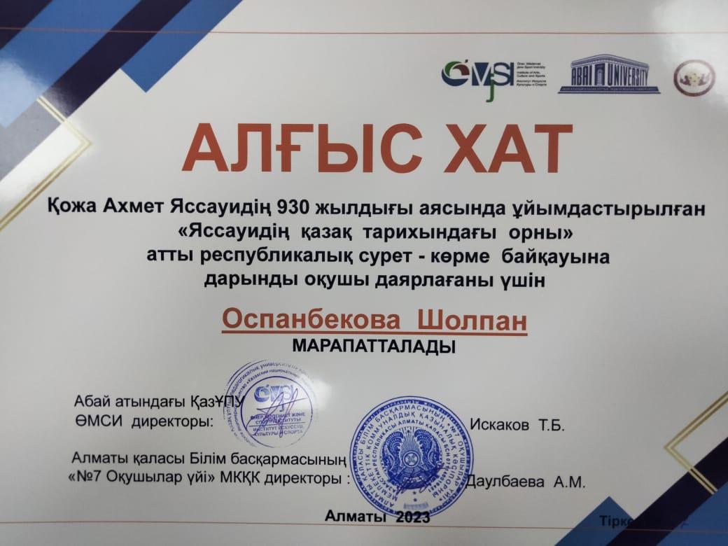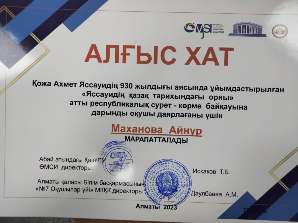Ұстаз жетістігі./Достижение учителя
