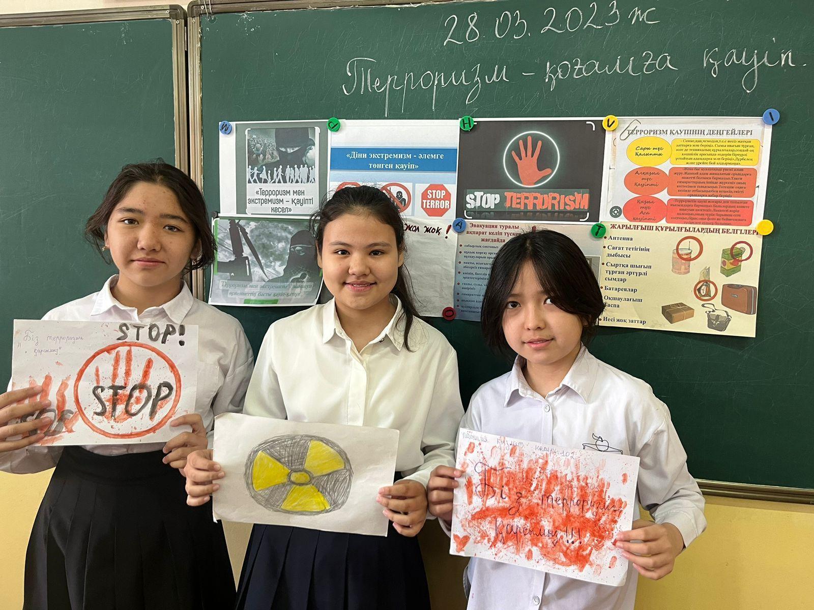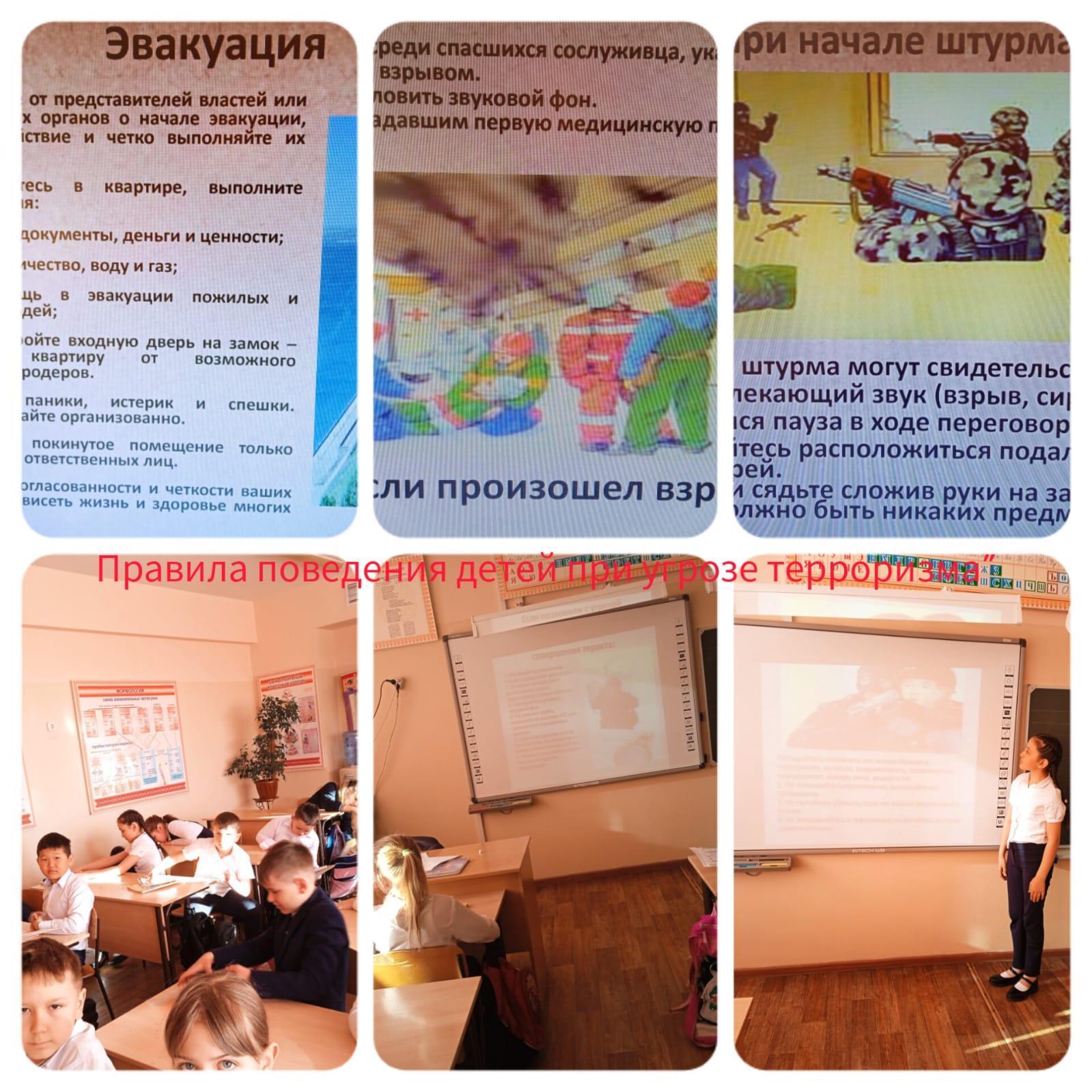 Сегодня 1 уроком прошли классные часы по программе "Ел Жастары"по теме "Терроризм ". Все темы в начальной школе,в среднем звене и старшем звене проведены.Начальная школа: