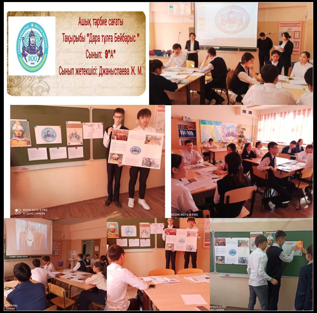 Биыл елімізде Сұлтан Бейбарыстың 800 жылдығын атап өту жоспарлануда. Мектеп жоспарына сәйкес 9 «А» - сынып жетекшісі ,тарих пәнінің мұғалімі Джаныспаева Жанар Манарбековна бүгін ашық тәрбие сағатын өткізді.