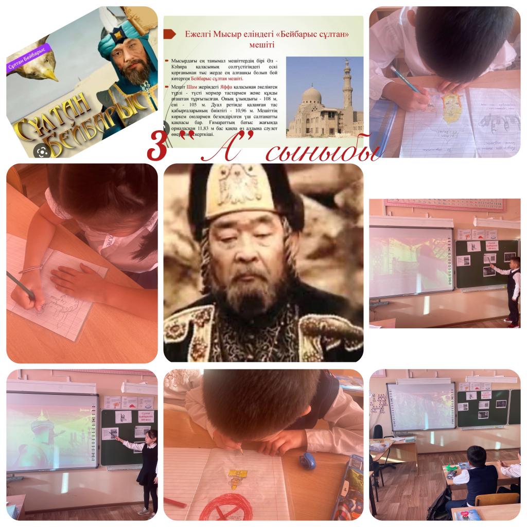 Бүгін №32 ЖББМ КММ де "Бейбарыс сұлтанның ерлігі" тақырыбында сынып сағаттары өтті .Тәрбие сабақтың мақсаты : Шығыс пен Батыстың кіндігі болған Мысыр елінің гүлденуіне, мәдениеті әлемдік деңгейге көтерілуіне ғалымдардың қосқан үлесін түсіндіру; Бабамыздың өз елінде емес, өзге елде 17 жыл сұлтандық құрып, сол елде құрметтелу кез келгеннің қолынан келмейтін іс. Ерлігін, батылдығын, табандылығын, қайсарлығын үлгі ету;Қаламға ілікпей, көзге түспей қалған жәйттарды зерттеу болашақтың ісі. Дегенмен газет - журнал бетіне шыққан материалды оқып өз бойымызға жақсы жағын алу керектігін түсіндіру.