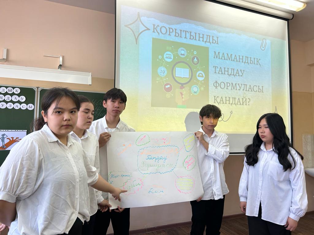 LS тобының жоспарына сәйкес 10 Ә сынып оқушылары "Мамандық таңдау формуласы" атты жоба жүргізді.Жетекшісі Иманбаева Жанара Бакбергеновна.