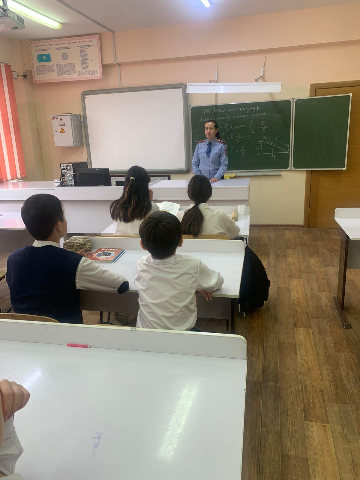 12 мая 2023 года старший инспектор группы профилактики правонарушений отделения административной полиции линейного управления полиции на станции Алматы 1 ДПК МВД РК майор полиции Акмолдаева А. А. провела беседу с учащимся средней школы № 32 города Алматы по теме : "Железная дорога-опасная зона, будьте осторожны!"она не только провела профилактическую разъяснительную работу, но и ответила на вопросы учащихся.