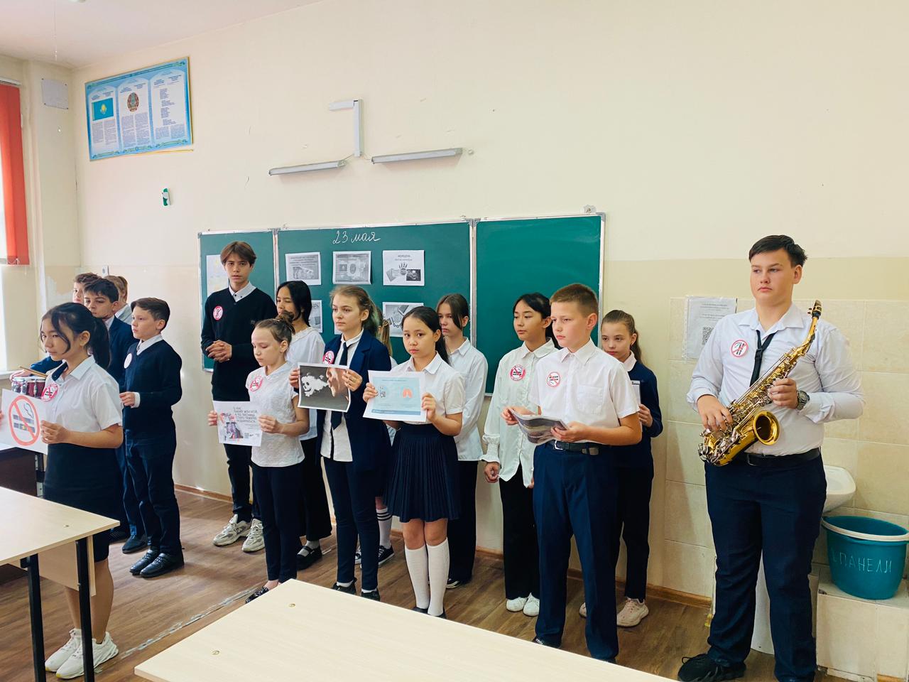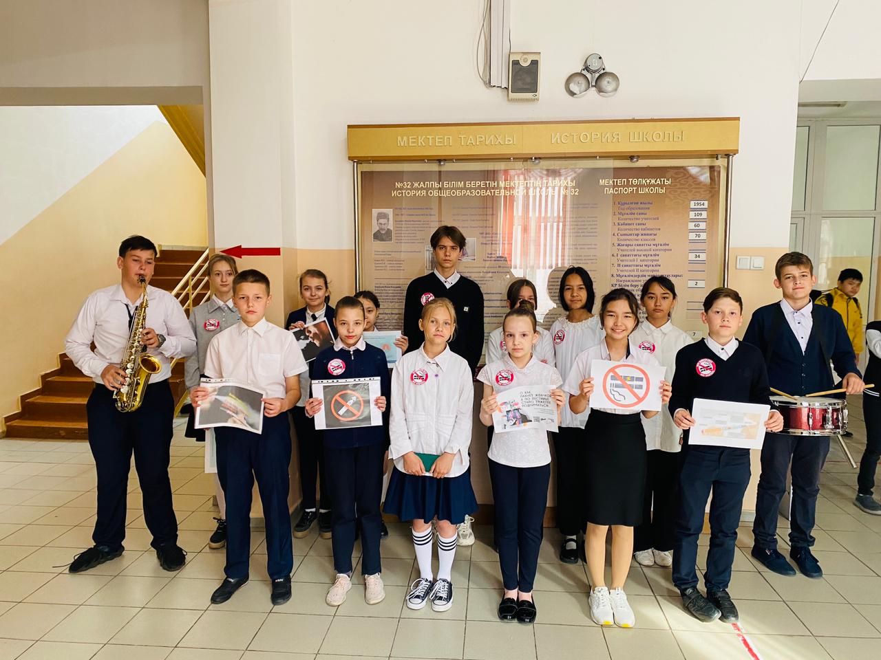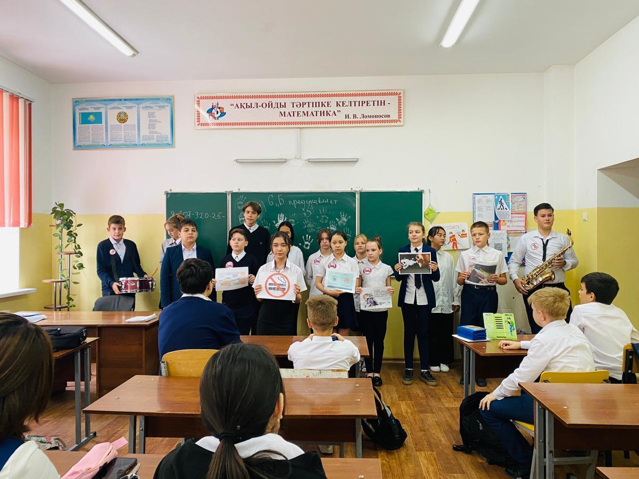Бүгін мектепте 5-6 сынып оқушыларының үгіт-насихат тобы Лессон стади жоспары аясында «Электронды темекінің зияны» туралы өз жобасын ұсынды.