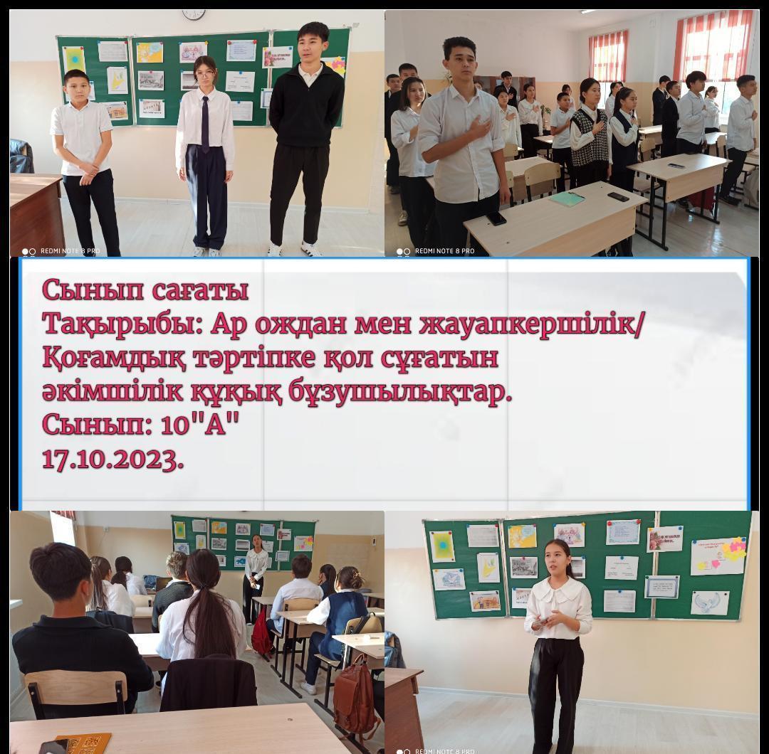 Бүгін 1 сабақ "Ар-ождан және жауапкершілік" және құқықтық жалпыға бірдей оқыту тақырыбында сынып сағаттарынан өтті. Сегодня 1 уроком прошли классные часы по теме "Совесть и ответственность" и правовой всеобуч.