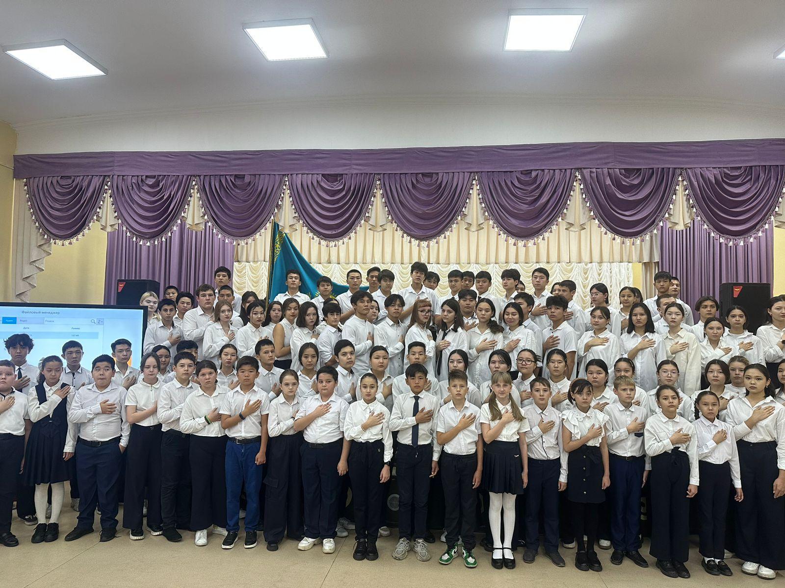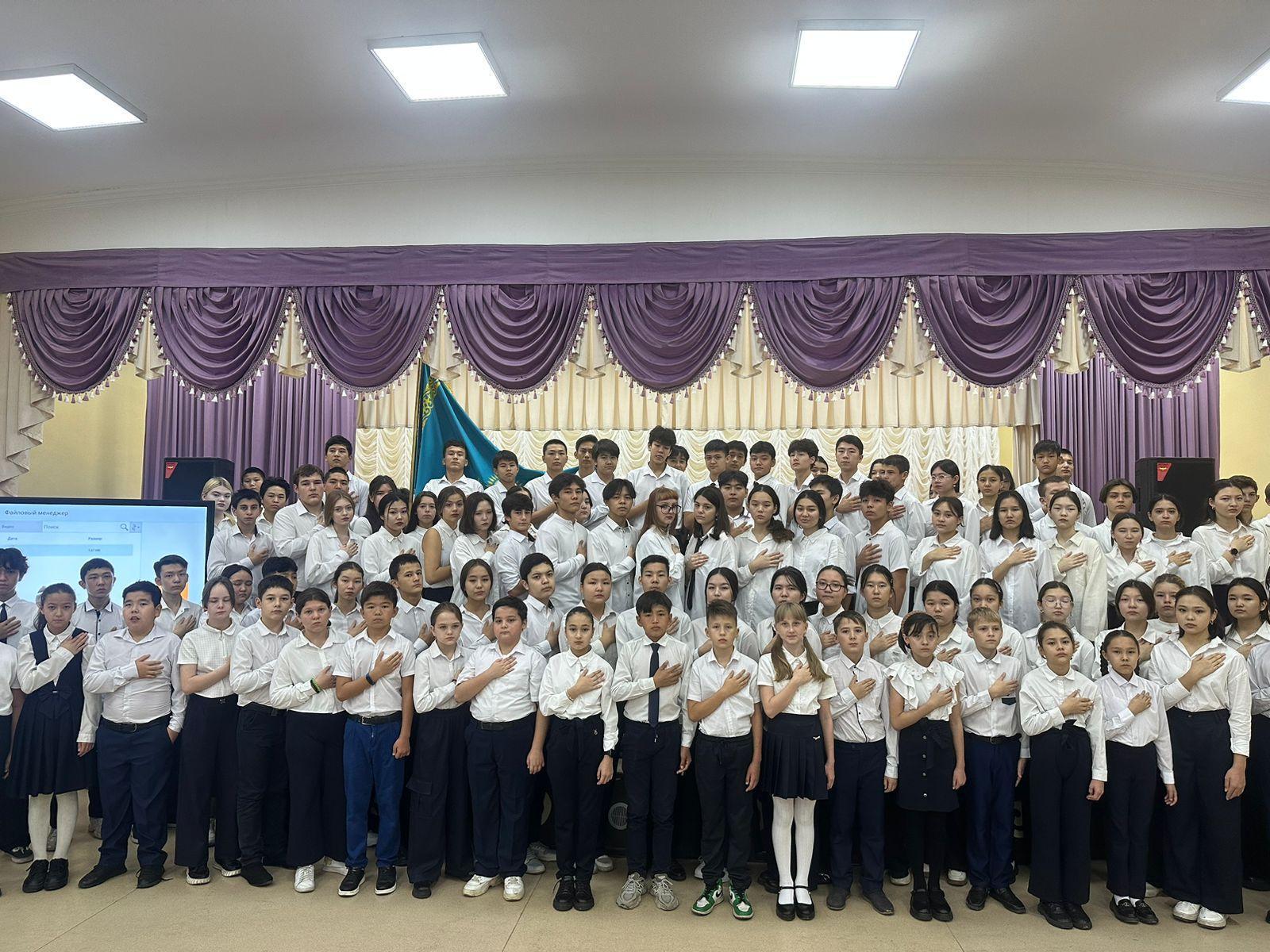 24 қазан күні сағат 08.00- де 25 қазан Республика күніне орай «Мәңгілік жаса, қыран елім Қазақстаным» онкүндігі аясында №32 ЖББМ оқушылары Қазақстан Республикасының Мемлекеттік Гимнін шырқады.