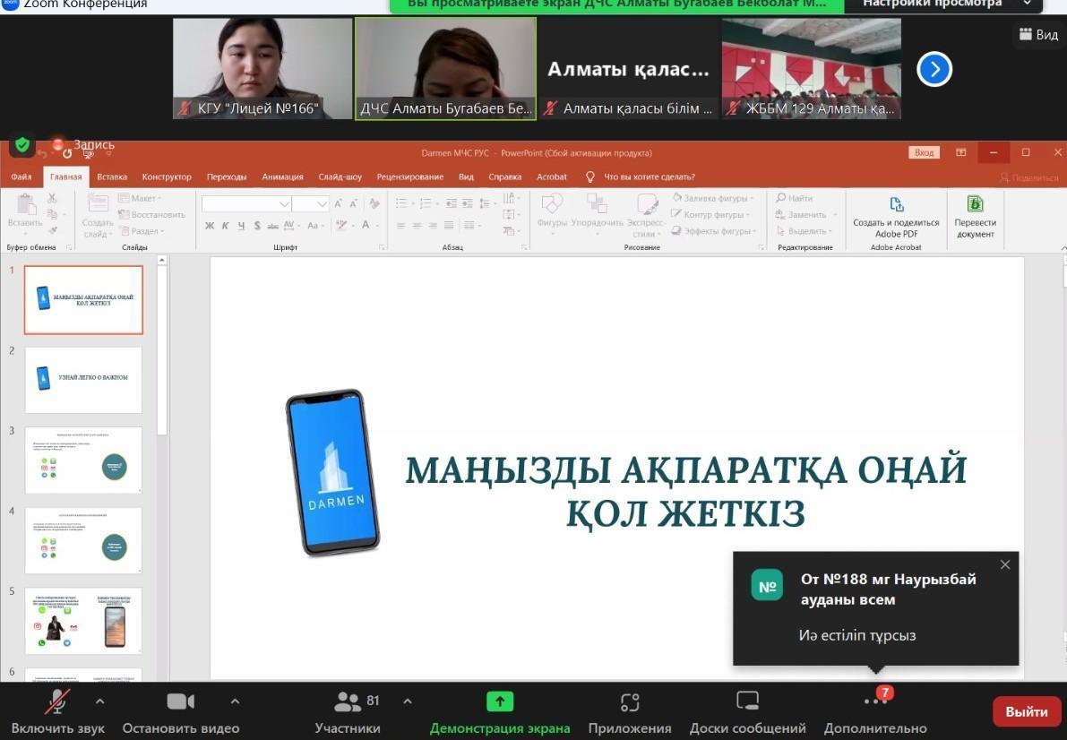 26 октября в онлайн формате прошла ZOOM конференция по принцам работы мобильного приложения "Дармен " организованное департаментом ЧС.