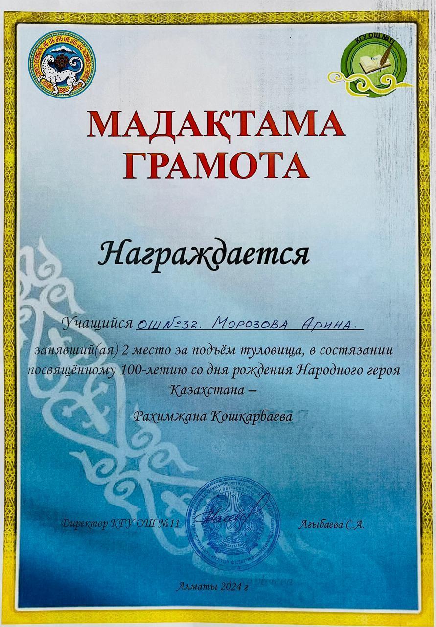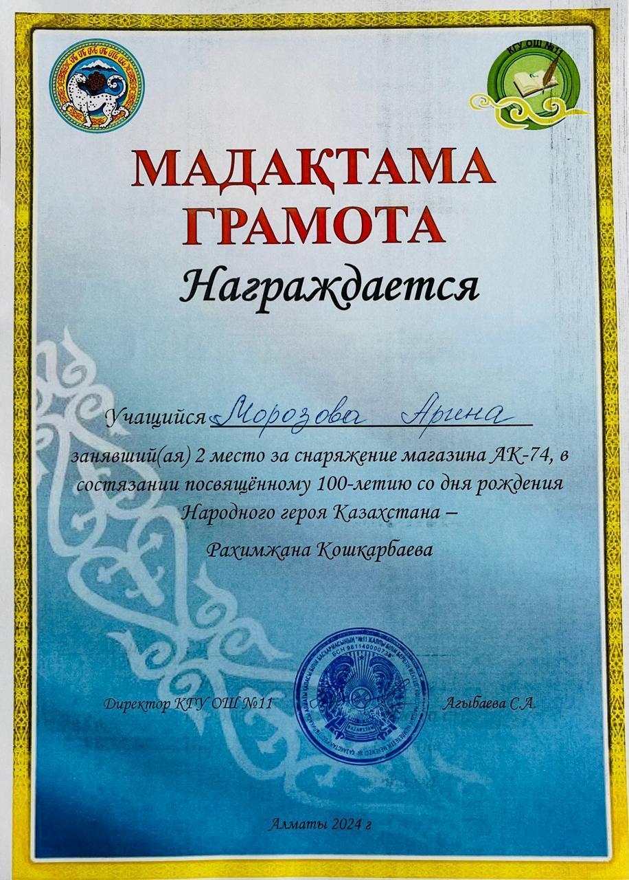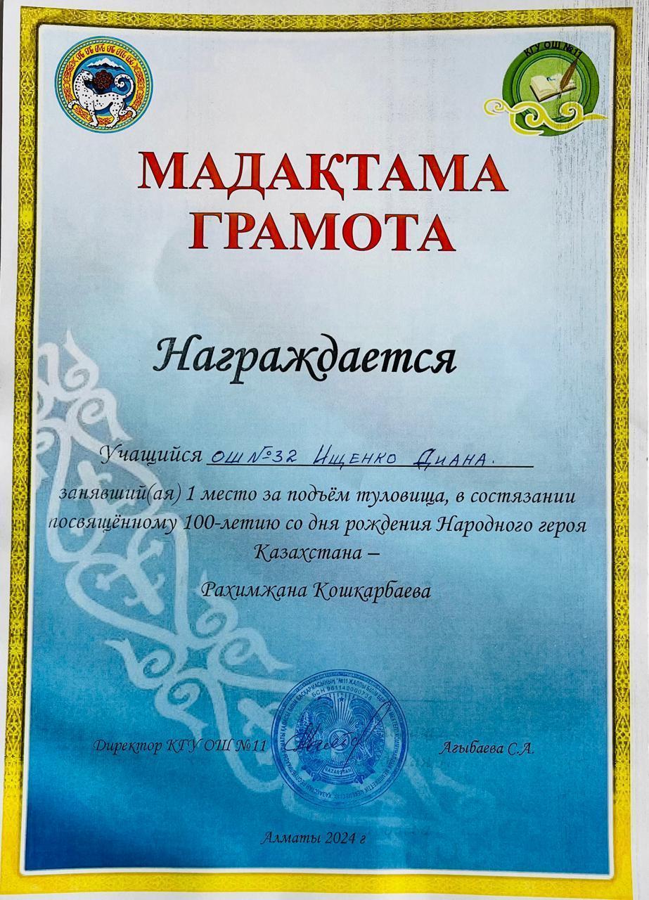 Учащиеся нашей школы , члены военно- патриотического клуба "Батыр" заняли Гран При на состязаниях посвященному 100-летию народного героя Казахстана Рахимжана Кошкарбаева.