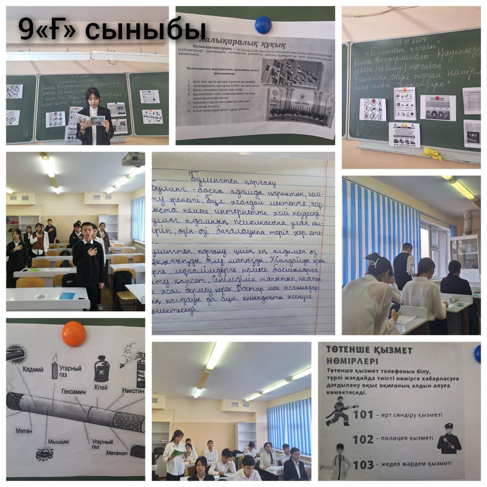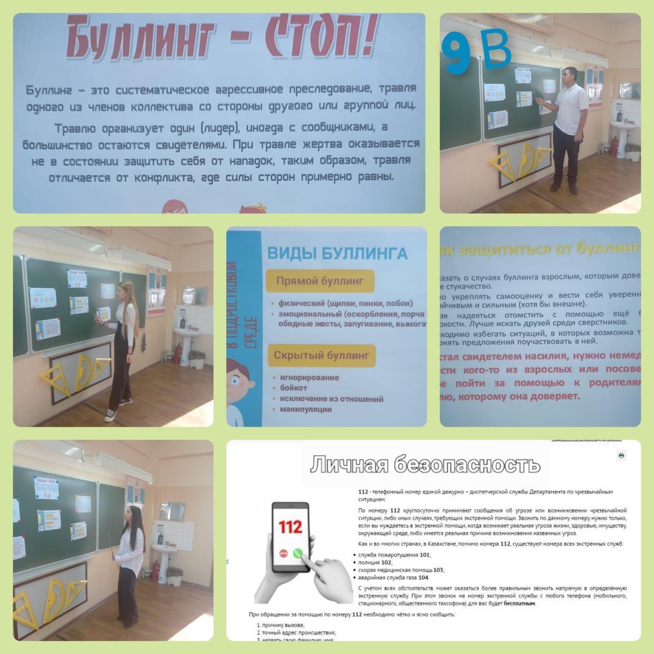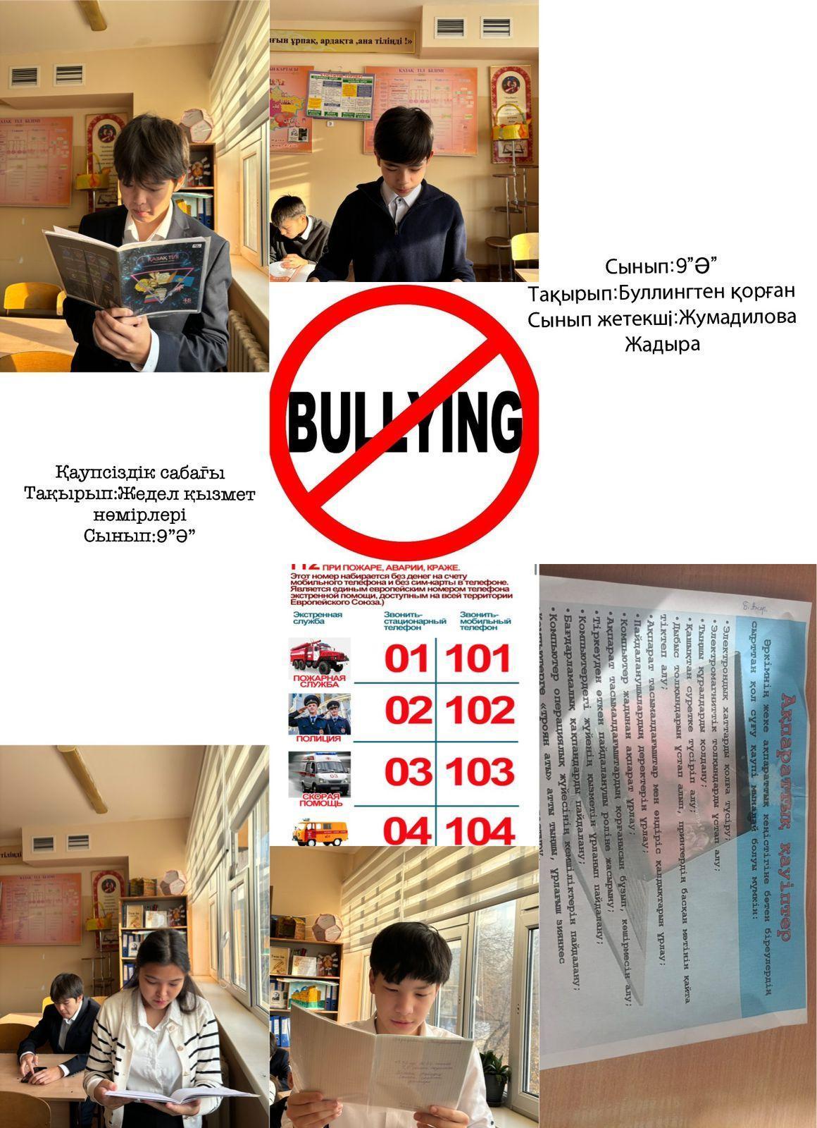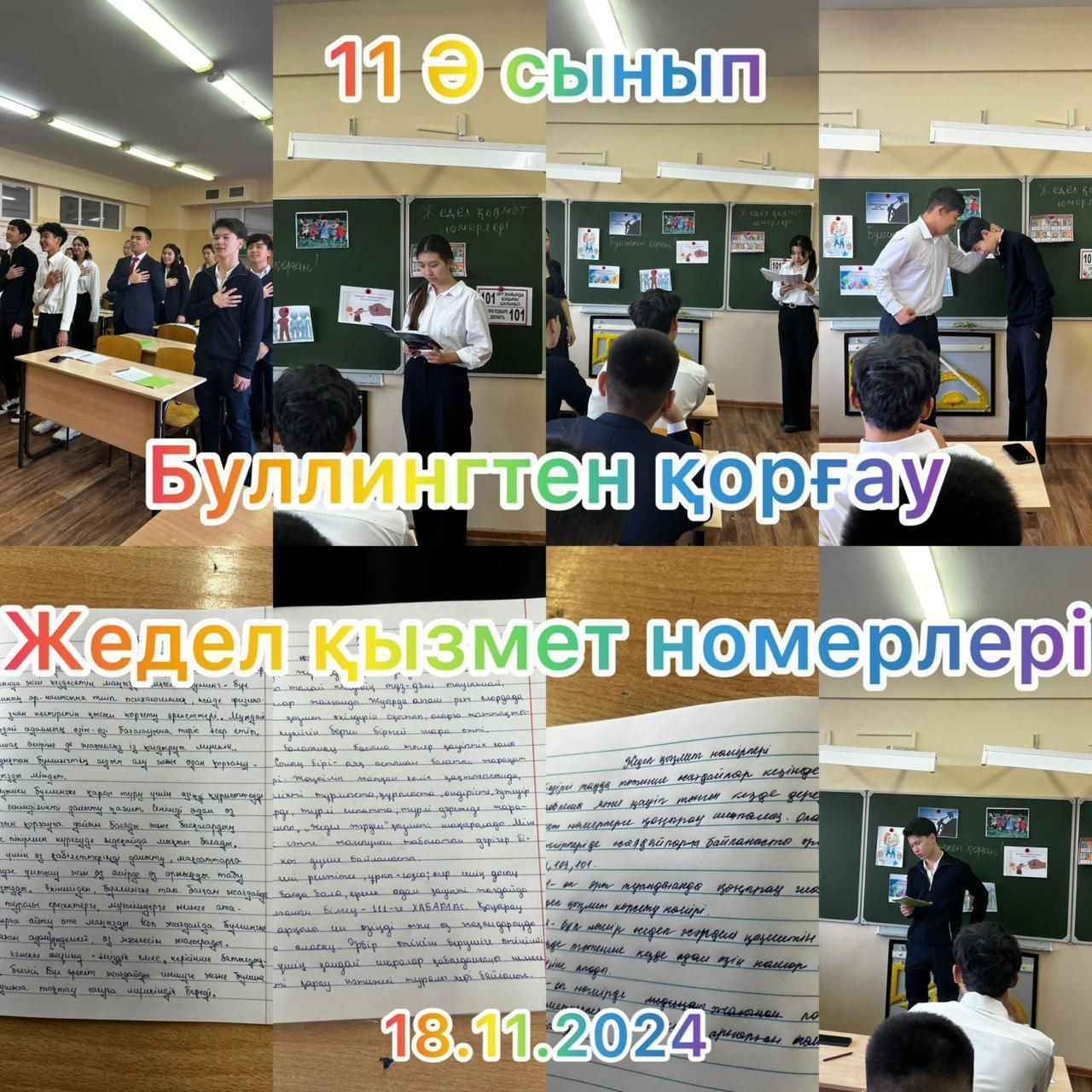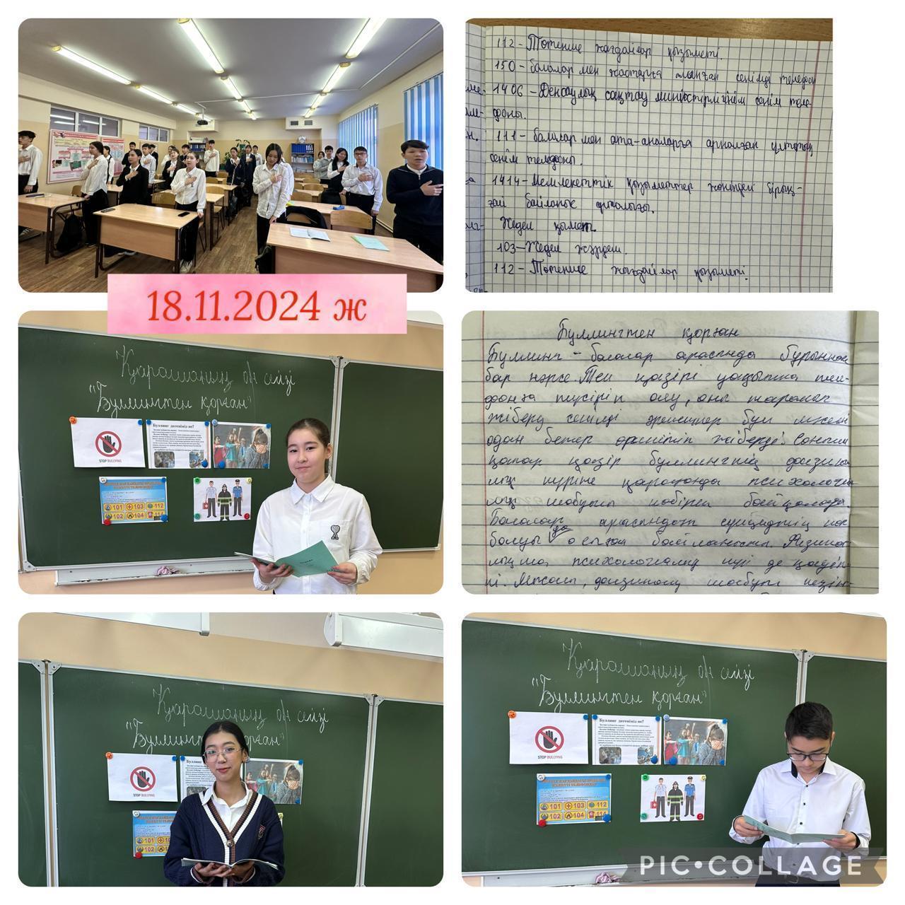 Бүгін 1 сабақта "Өзіңді буллингтен қорға" тақырыбында сынып сағаттары, жеке қауіпсіздік сабақтары өткізілді. Сегодня 1 уроком прошли классные часы по теме "Защити себя от буллинга"уроки личной безопасности.