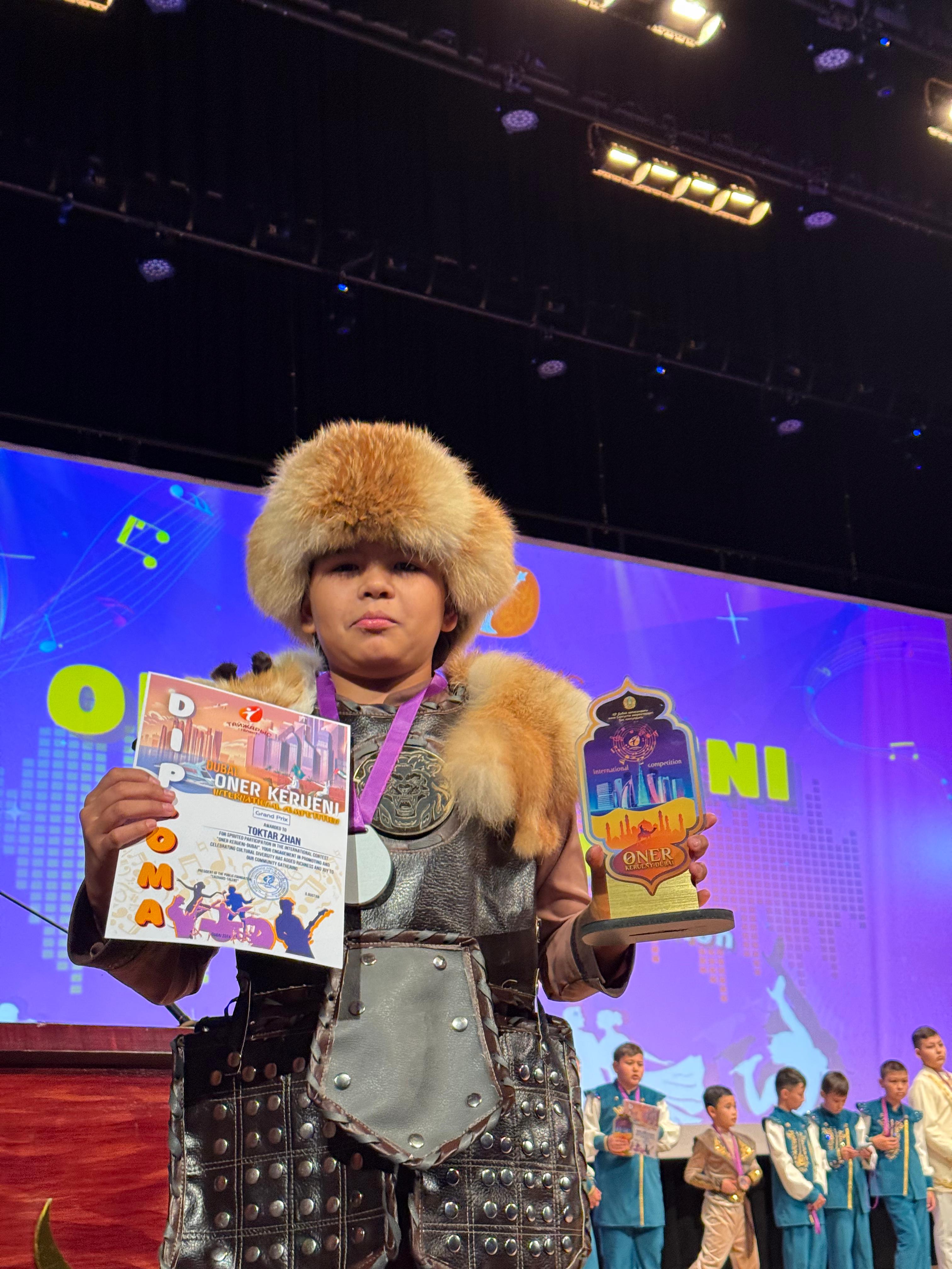 Дубайда домбырадан өткен халықаралық жарыста 7 ғ сынып оқушысы Тоқтар Жан Бас Жүлдені жеңіп алды! На международных соревнованиях по домбре в Дубае главный приз завоевал Тохтар Жан, учащийся 7-го класса!