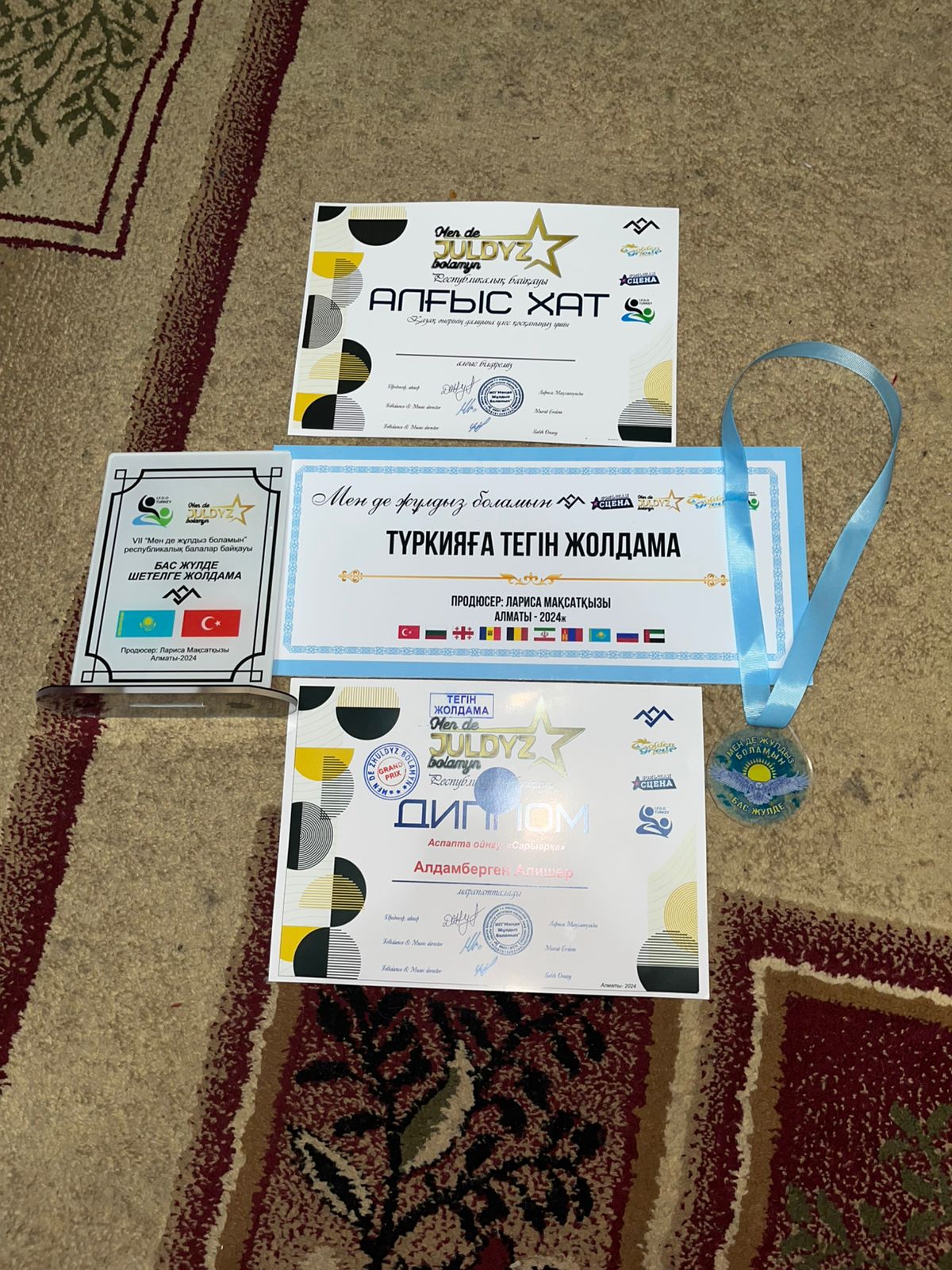 8 "А" сынып оқушысы Алламберген Алишер Республикалық домбырашылар сайысында Бас жүлдені жеңіп алып, Түрік еліне Халықаралық сайысқа қатысу жолдама алды. Келесі сайыста Алишер баламыз Қазақ елінің туын көкке желбіретіп, қуанышқа бөленейік!