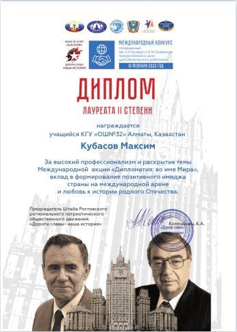 Оқушы жетістігі\Достижение ученика