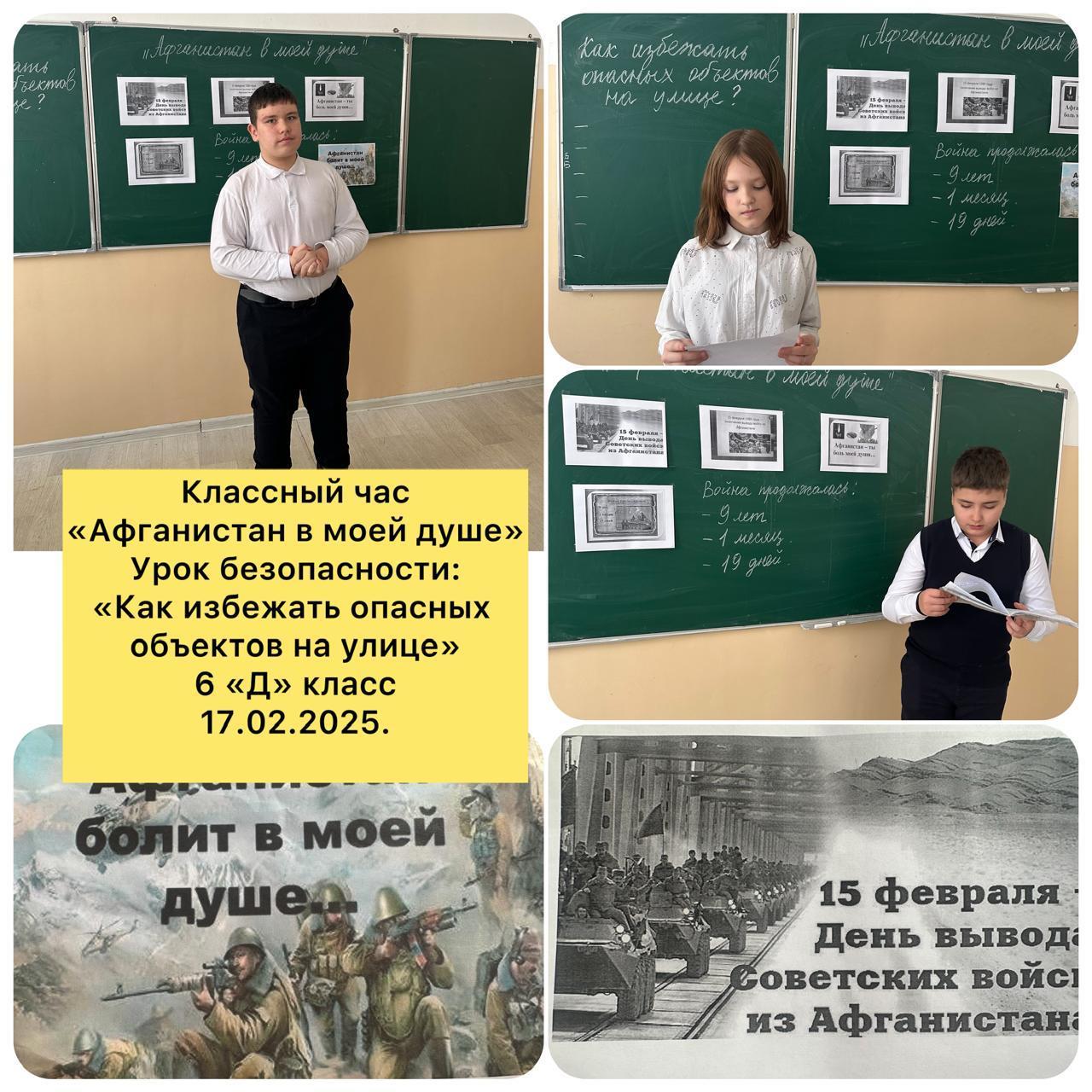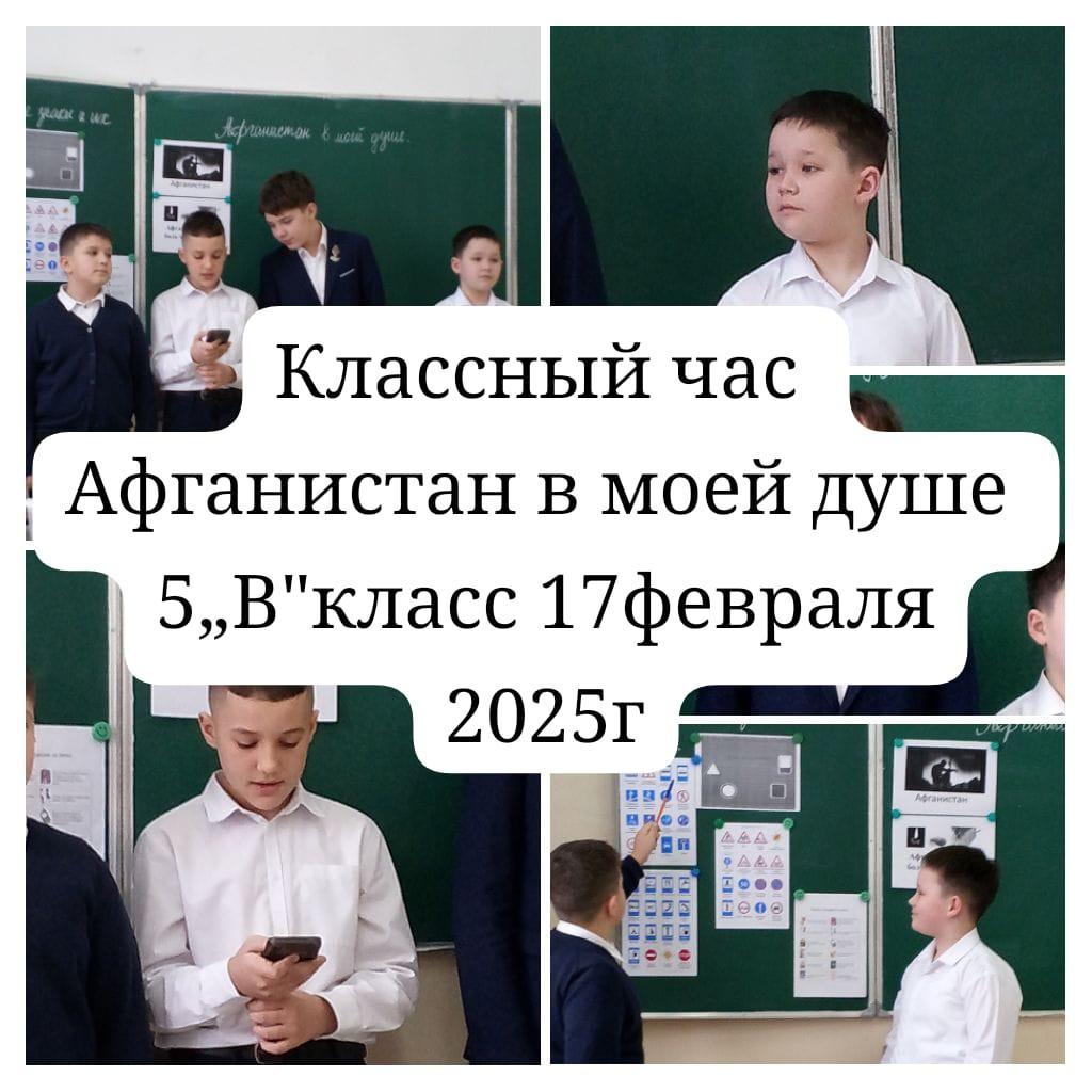 17 ақпанда Ауғанстаннан әскери қызметшілердің шығарылғанына 32 жыл толуына орай сынып сағаты өткізілді . 17 февраля проведен классный час к 32-летию вывода воиск из Афганистана