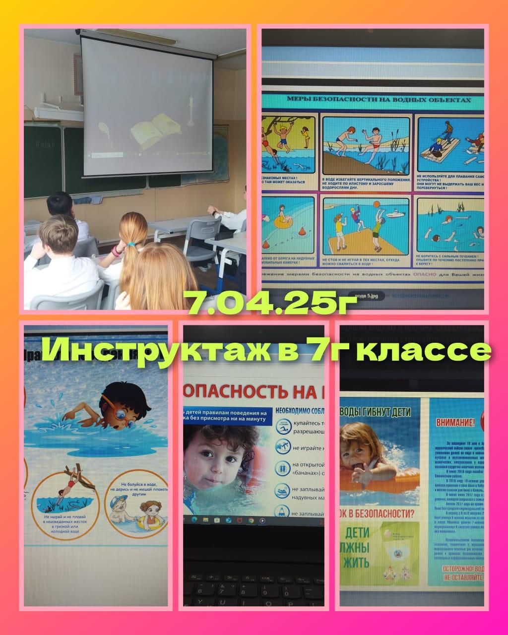 07.04.2025 г. среди 1-11 классов проведена инструктаж по "Безопасности на воде ". Безопасность на воде-это набор мер и правил безопасности на воде, которые принимаются в целях защиты жизни и здоровья людей на воде. Безопасность на воде включает в себя следующие аспекты:
