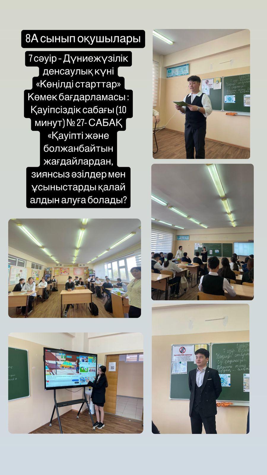 07 сәуірде "Дүниежүзілік денсаулық күні" және "Сарқылмас қайнар кітап" тақырыбында сынып сағаттары өтті. 07 апреля прошли классные часы по теме "Всемирный день здоровья"и "Книга неиссякаемый источник"