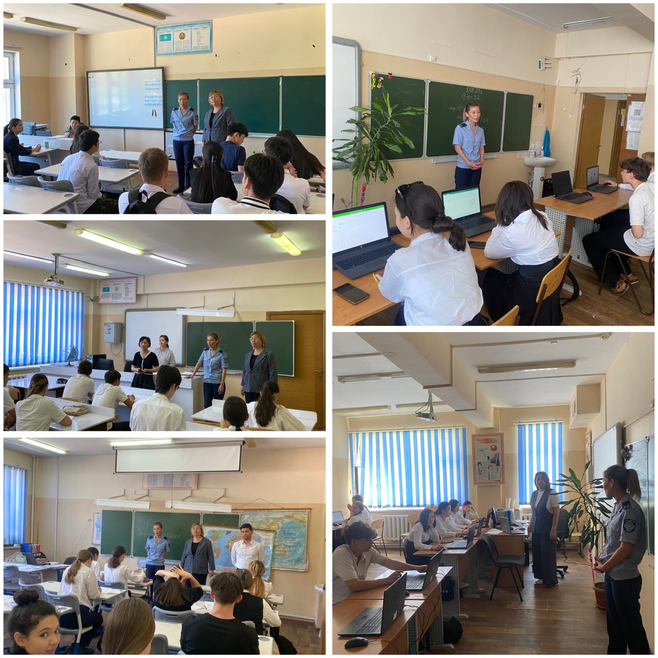 Мектеп инспекторы Дәуітова П "9-10 сыныптар арасында кәмелетке толмағандардың психологиялық жағдайына нашақорлықтың әсері және 5-8 сыныптар арасында "Оқушылардың құқықтары мен міндеттері" тақырыбында әңгіме жүргізді.